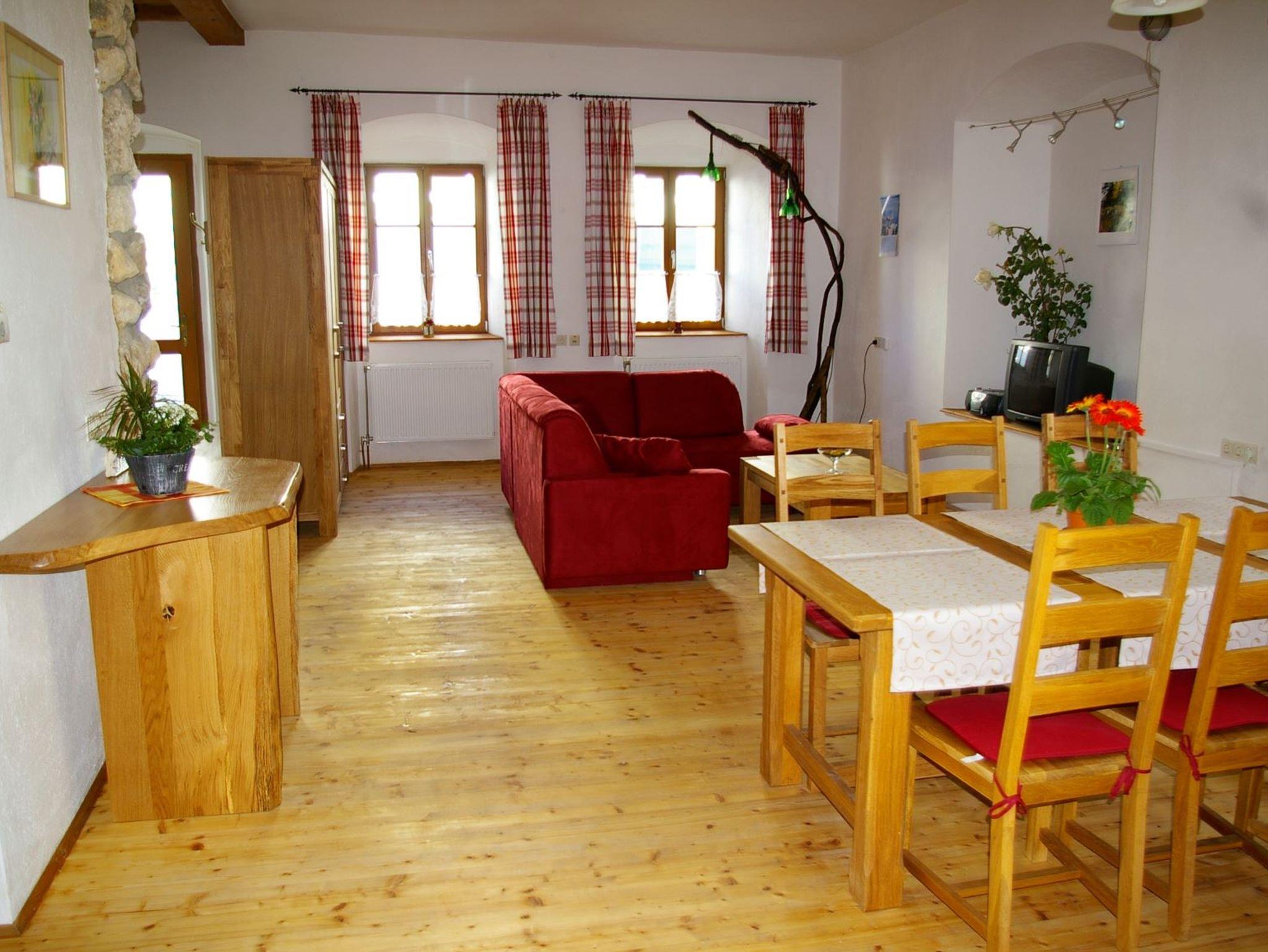 Die Wohnung hat 100 m² und ist für 2-4 Personen ausgelegt. Es gibt ein Schlafzimmer mit einem Doppelbett und einen Wohnschlafraum mit einer stabilen ausziehbaren Couch. Bettwäsche, Hand- und Badetücher werden zur Verfügung gestellt. Ein besonderes Wohlgefühl bieten die Vollholzmöbel, die orthopädischen Matratzen, der Lehmverputz und der geölte Holzfußboden. Für einen traumhaften Schlaf sorgen die orthopädische Matratzen. Natürlich gibt es auch einen Sat-TV, Bücher, Spiele und einen freien WLAN-Internetzugang. Die kleine Küche ist mit Kühlschrank, Herd, Mikrowellenherd mit Grillfunktion, Teekocher, Filterkaffeemaschine und Kapsel-Kaffeemaschine (passende Kaffeekapsel sind vorort) sowie Geschirr ausgestattet.