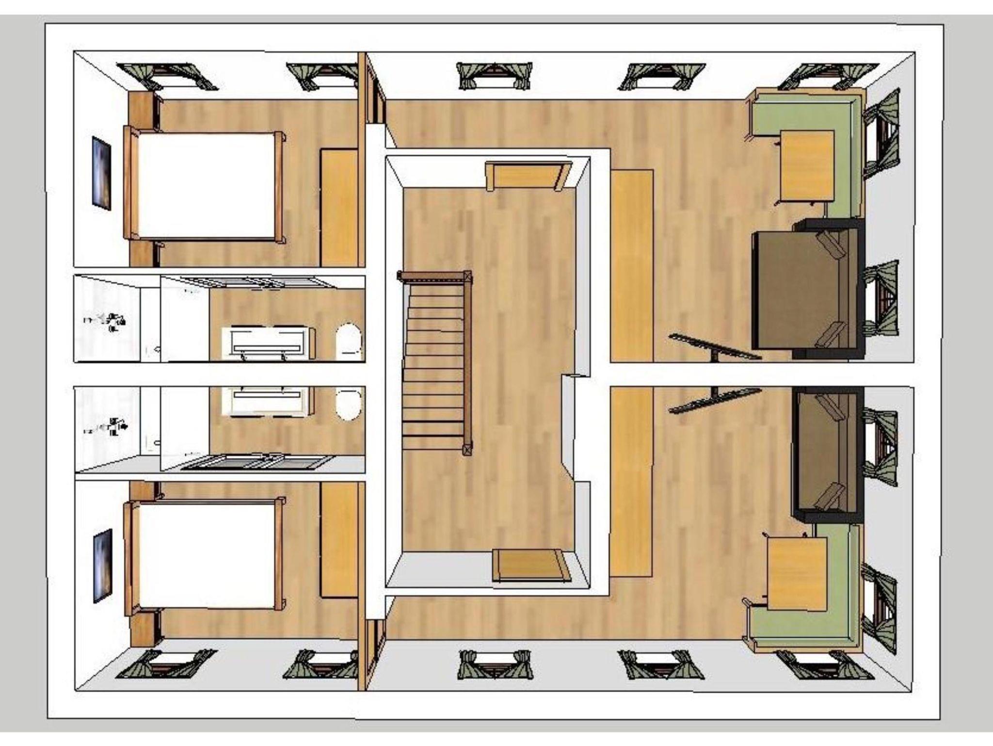 1 Schlafzimmer mit Doppelbett mit Blickrichtung nach Westen.