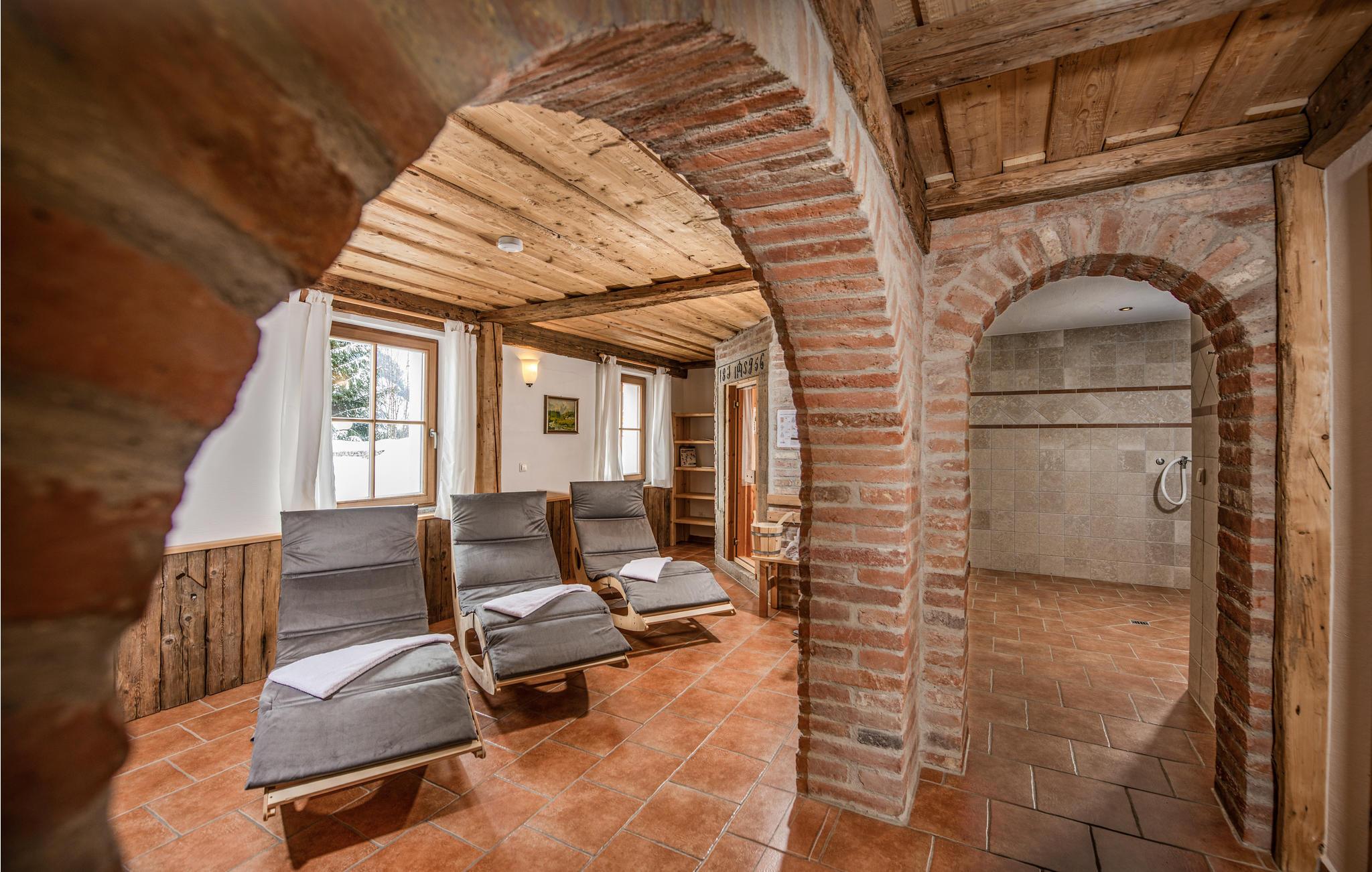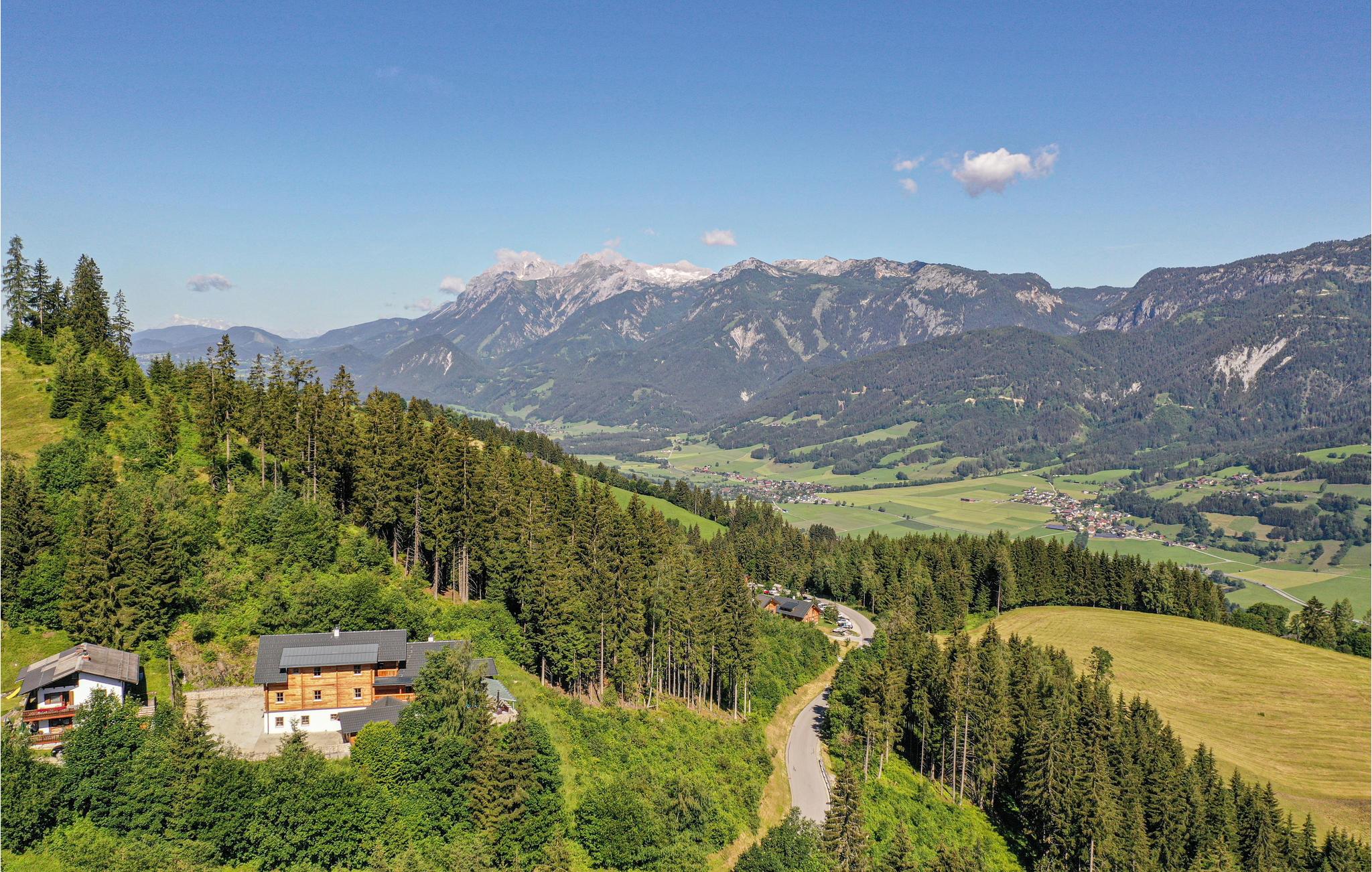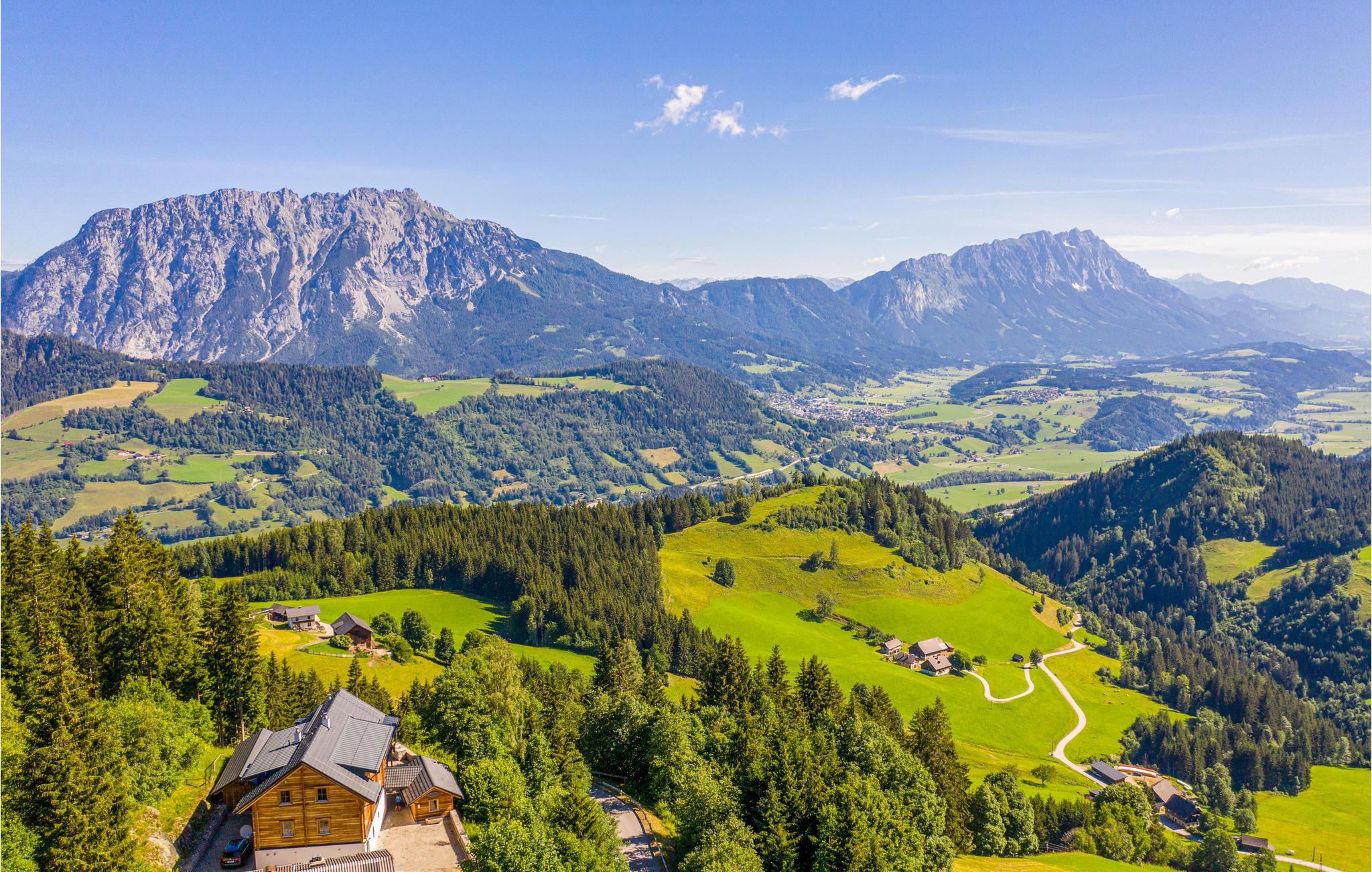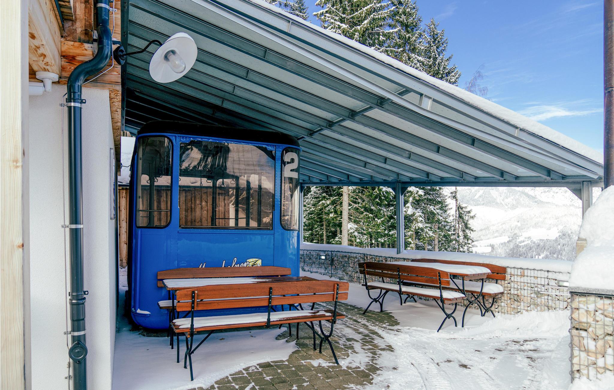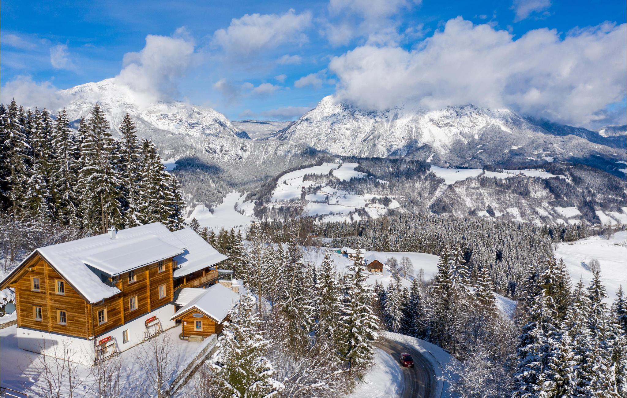 De tre etager er forbeholdt jer, men gør det muligt at dele jer op, så alle også kan få lidt privatliv på ferien, og så er der fjernsyn med soundsystem. Efter en dag med massevis af oplevelser er det herligt at kunne slappe af i husets 50 m² store wellnessområde eller nyde den vidunderlige udsigt over Enns-dalen fra terrassen. Noget af det bedste ved stedet er den originale kabelbane ved den overdækkede grillplads i udendørsområdet.