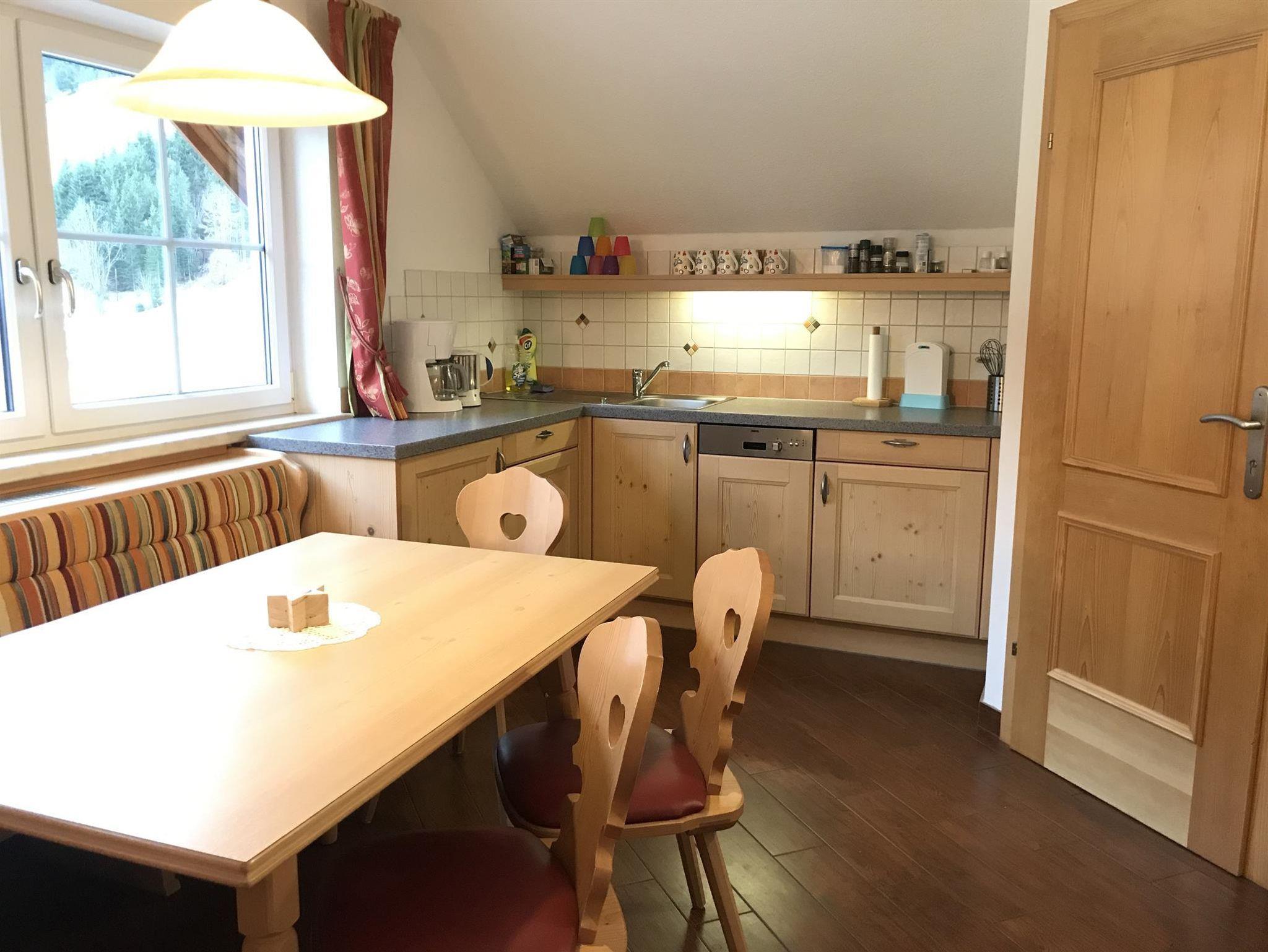 Unsere große Ferienwohnung ist gemütlich und komfortabel ausgestattet (eigener Holzofen in der Küche) sowie komplett eingerichtet (Geschirrspüler, Mikro, Backrohr, Ceranfeld, Kühlschrank, Wasserkocher, Kaffeemaschine, Toaster, Radio, Sat-TV). Gitterbett und Zusatzbett möglich!