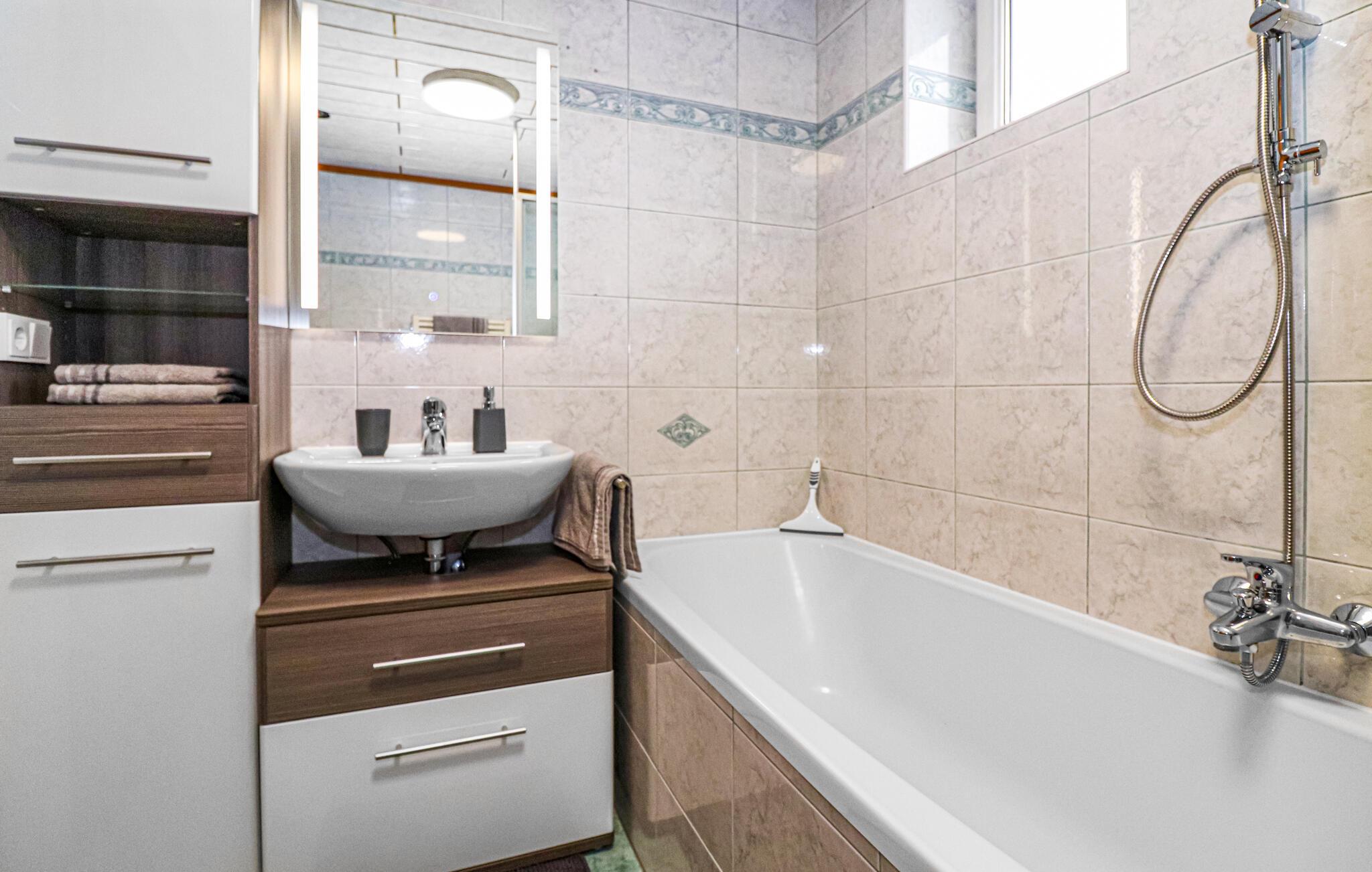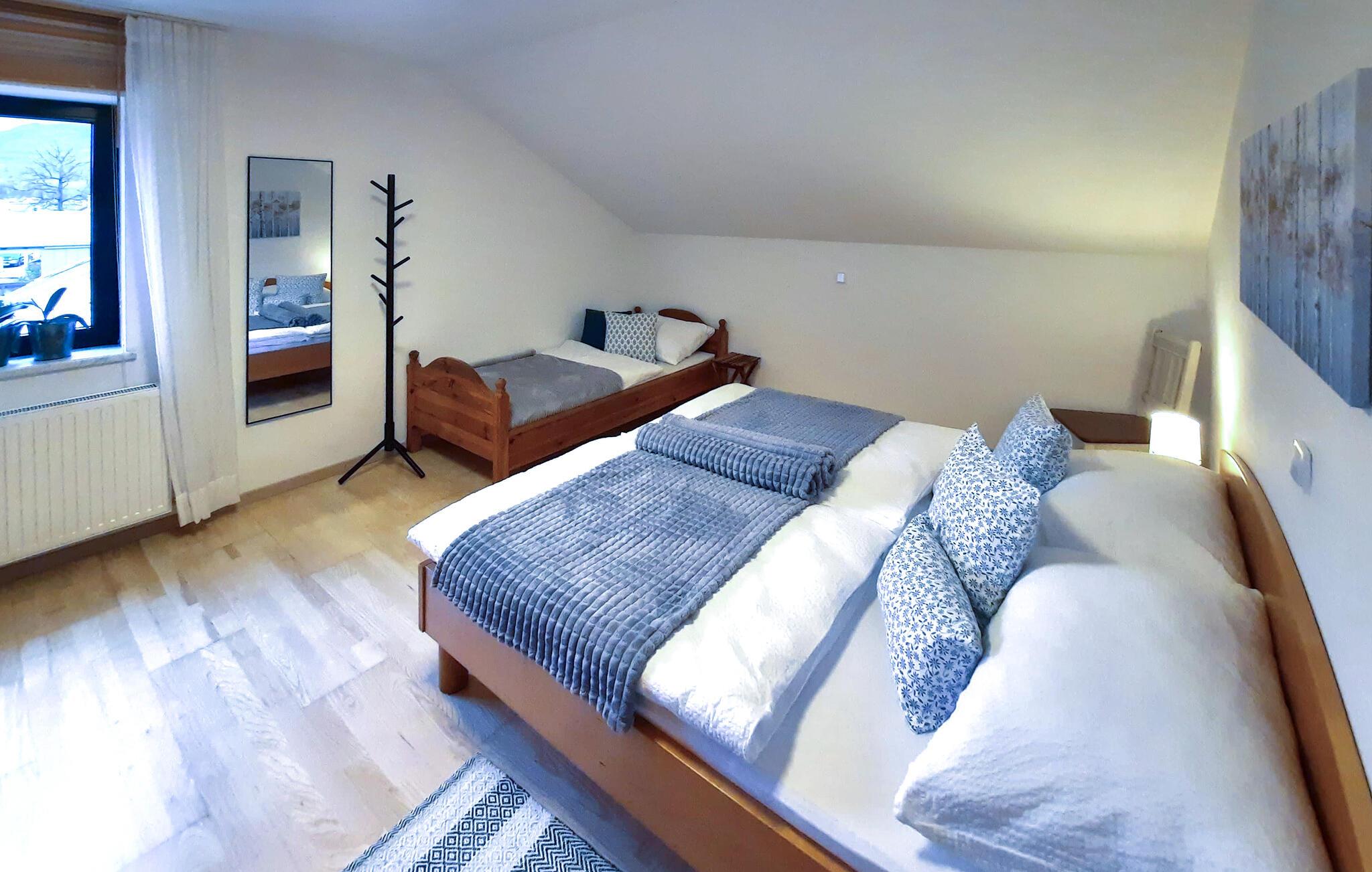 Ankom med familien i denne indbydende og komfortable loftslejlighed og nyd den hjemlige stemning med moderne og klassiske møbler. At lave mad i det moderne og fuldt udstyrede køkken lover ikke kun en god tid for amatørkokke, men I kan også fremtrylle lækre måltider sammen med familien. I kan lege ved spisebordet efter middagen eller læne jer tilbage i sofaen til en filmaften. Perfekt til et afslappet og behageligt ophold med hele familien.