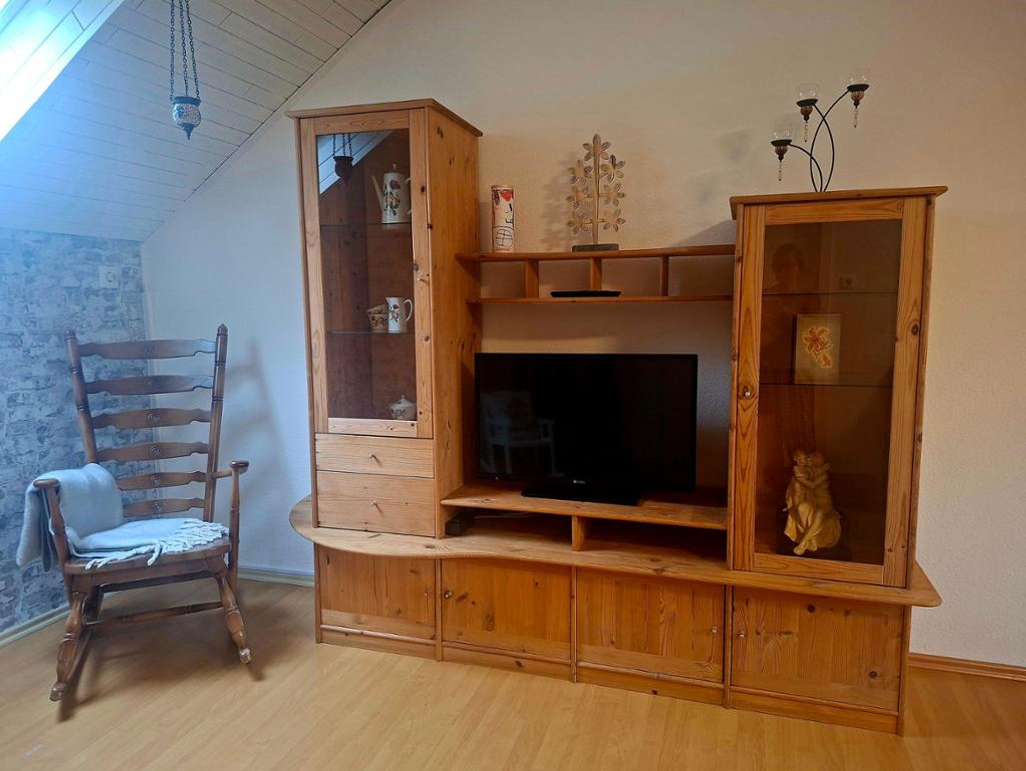 Im gemütlichen Wohnzimmer laden ein Sofa, ein Flachbild-TV, Gesellschaftsspiele sowie eine Leseecke für Groß und Klein zum geselligen Beisammensein ein.