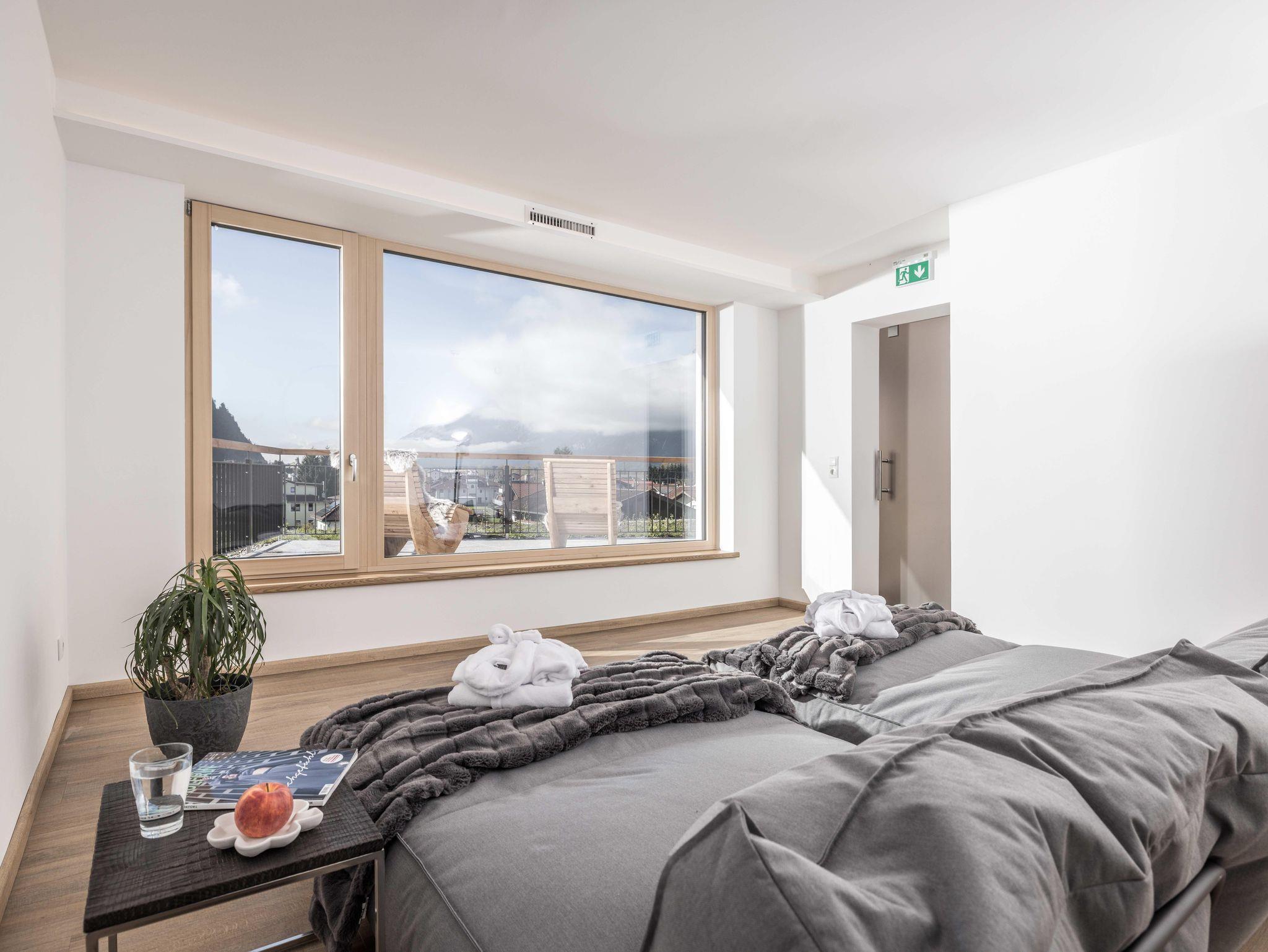 Das Appartement Freude befindet sich im 2. Obergeschoss und verfügt über 35m2 und bietet Platz für bis zu zwei Personen. Das modern eingerichtete Appartement hat einen Blick auf das Sonnwendjoch.