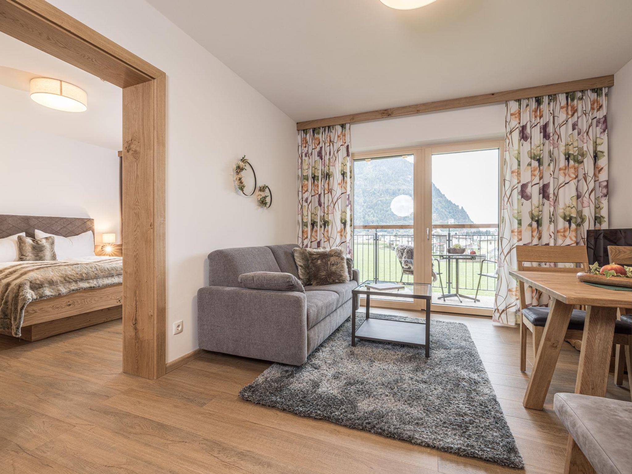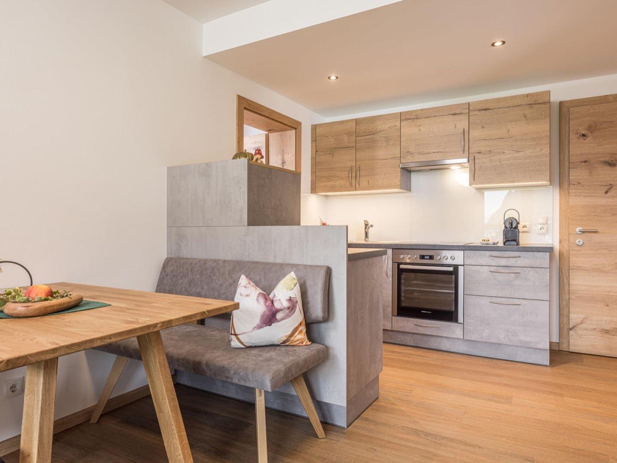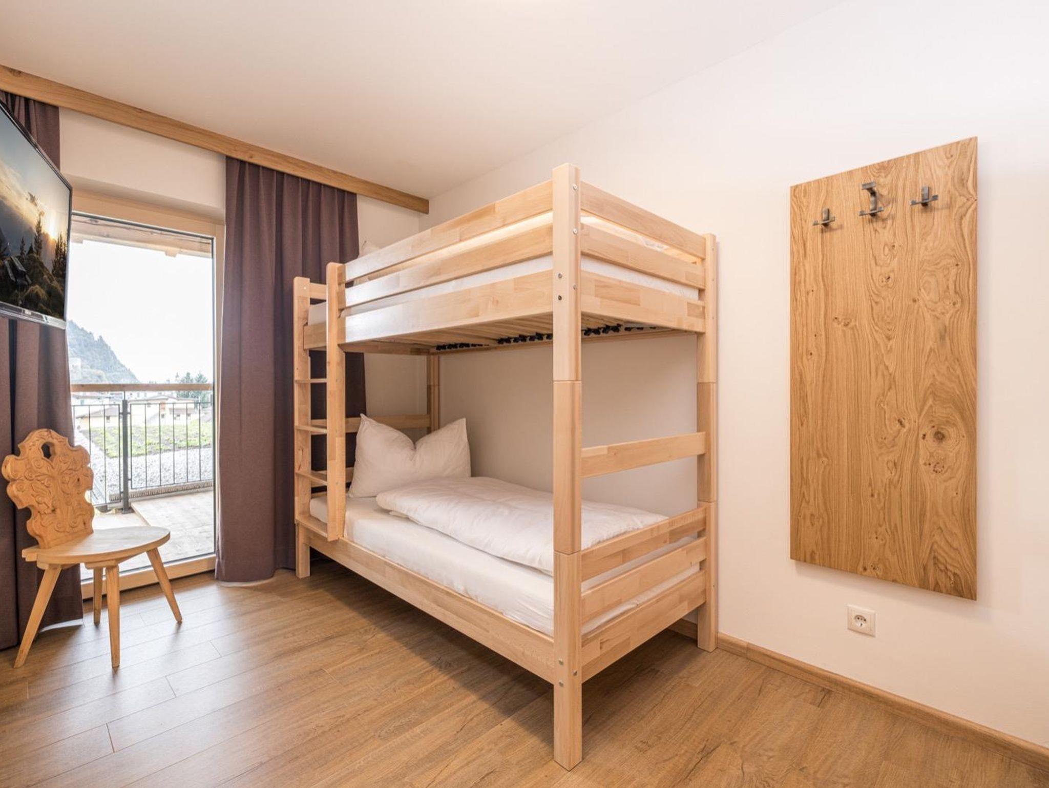 Das Appartement Zuversicht befindet sich im 3. Obergeschoss (47m2) und bietet Platz für bis zu vier Personen. Das moderne Appartement mit Blick auf den Rattenberger Schlossberg sowie das Inntal verfügt über zwei getrennte Schlafzimmer mit einem großzügigen Doppelbett sowie einem Stockbett und einem Wohn - Essbereich. Die Küche ist voll ausgestattet: Nespresso Maschine, Wasserkocher, Kühlschrank mit Gefrierfach, Backofen, 4- Platten Cerankochfeld, Geschirrspüler, Kochuntensilien und Geschirrtücher. TV Geräte finden Sie im Wohn - Essbereich wie auch in den Schlafzimmern vor. Ebenfalls bietet das Appartement eine gemütliche Essecke sowie ein Sofa an.