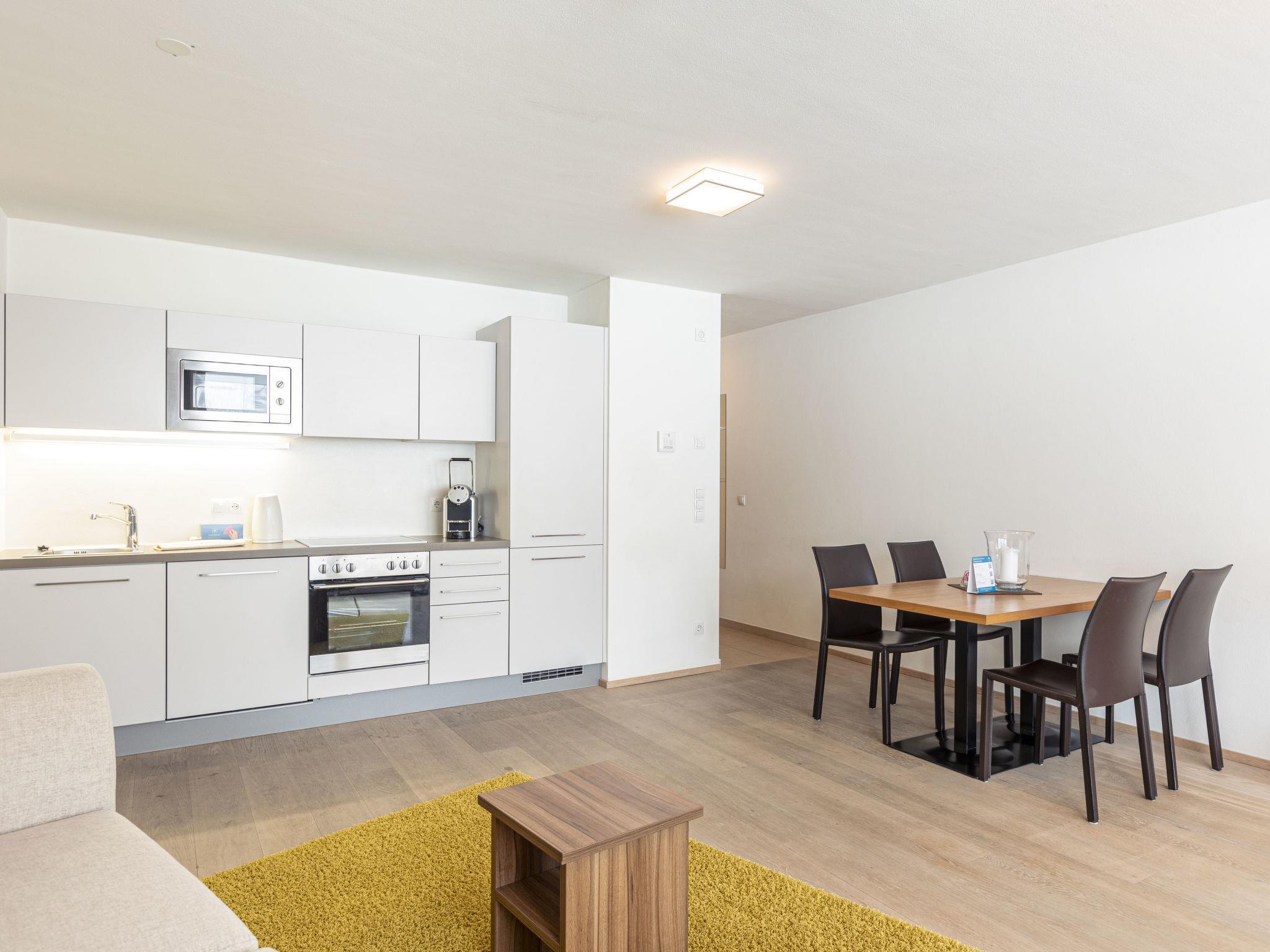 "Superior mit 1 Schlafzimmer & Pool", 2-room apartment 57 m2. Bright, modern and cosy furnishings: 1 double bedroom. Large living/sleeping room with 1 double sofabed, dining nook, satellite TV and flat screen. Open kitchen (oven, dishwasher, 4 ceramic glass hob hotplates, microwave, electric coffee machine, Capsules for coffee machine (Nespresso) extra). Shower/WC, sep. WC. Balcony terrace. Terrace furniture. Beautiful view of the swimming pool and the garden. Facilities: Internet (WiFi, free). Parking, garage. Please note: non-smokers only. Maximum 1 pet/ dog allowed. The property is one of a type of property or apartment. 50417-000027-2020