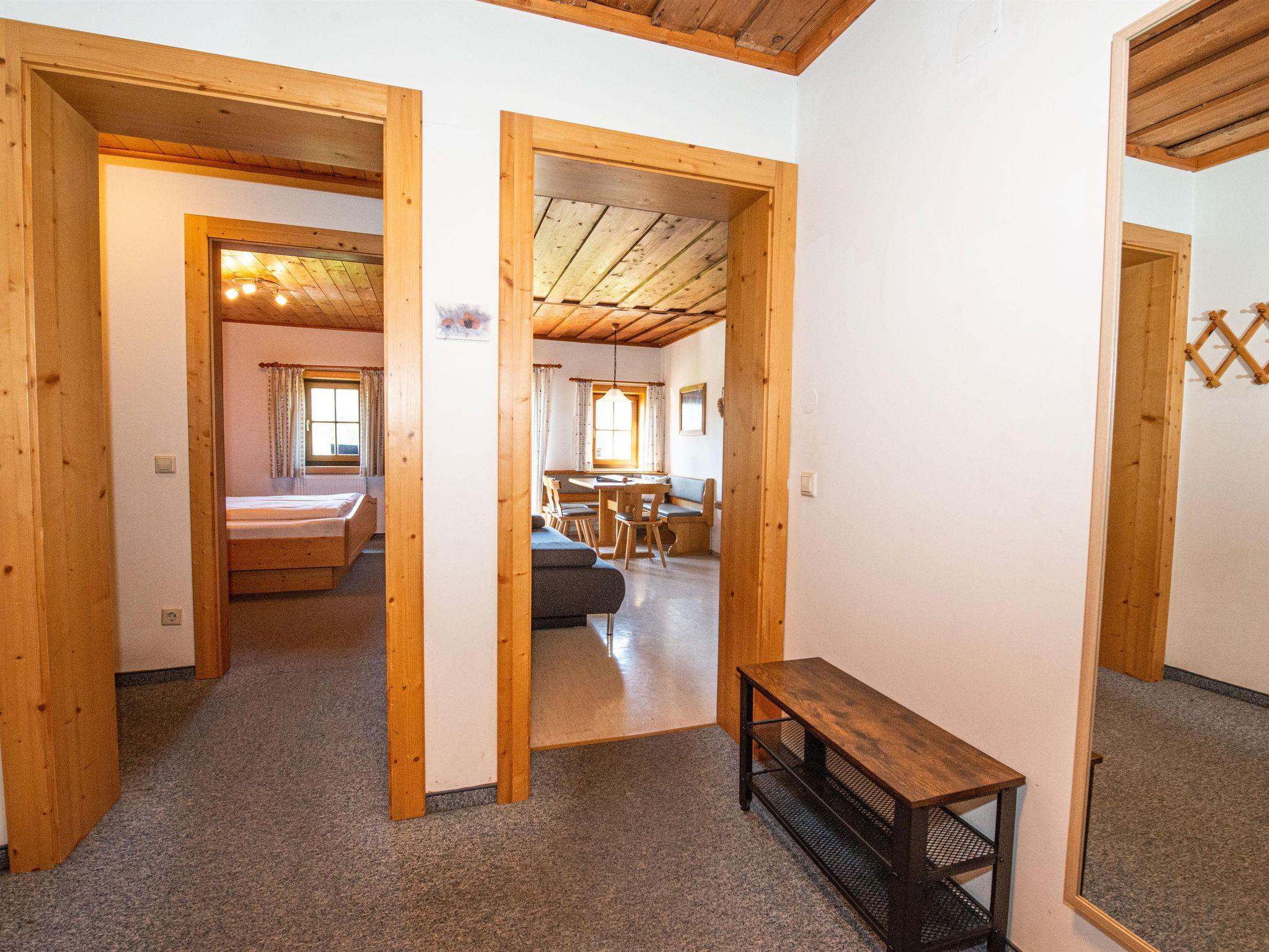 Das Appartement Lackenkogel für 4- 6 Personen befindet sich in unserem Bauernhaus im Dachgeschoß. Es bietet Ihnen einen großen Vorraum mit Garderobe, eine Küche (mit Koch- und Speisegeschirr, Wasserkocher, Geschirrspüler, Mikrowelle, Kaffeemaschine und E- Herd mit Backrohr), zwei Schlafzimmer (1x Doppelbett, 2x Einzelbetten), getrenntes Bad und WC, ausziehbare Couch, Fernseher, Radiowecker und Balkon mit Sitzgarnitur.