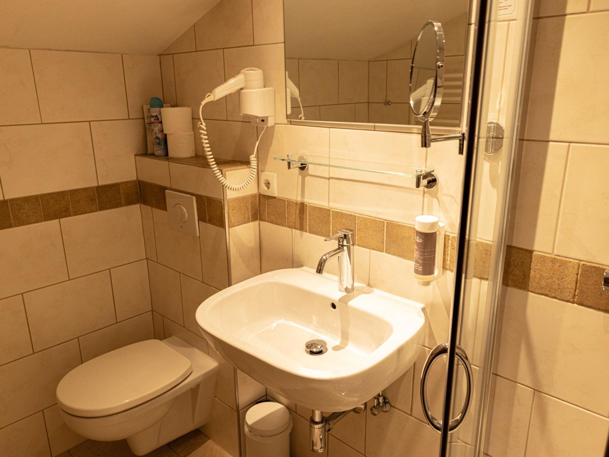 Dusche und WC/ Föhn/Toilettenartikel