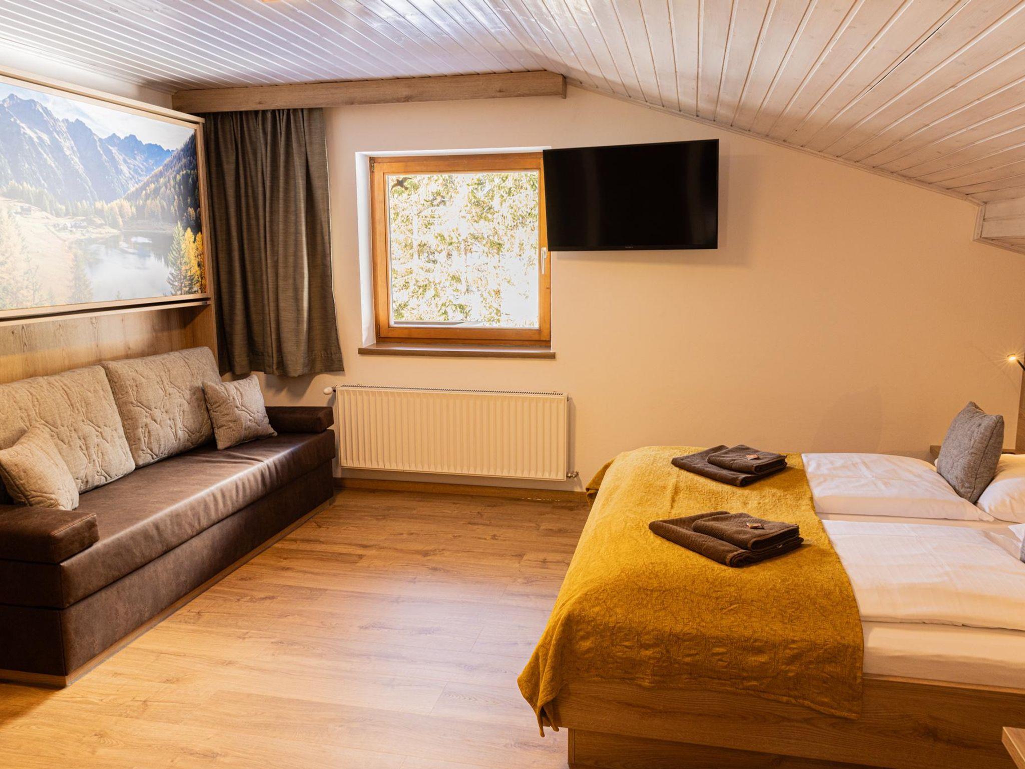 Komfortable und geräumiges Zimmer mit Bergblick.