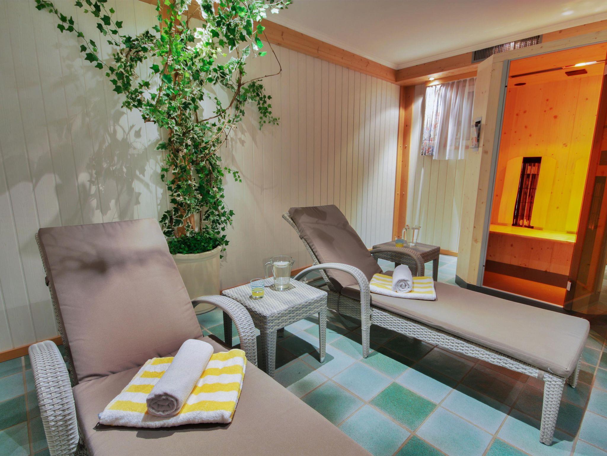 Herrliche Ruhe und Entspannung pur genießen Sie in unserer hauseigenen Saunaoase mit finnischer Sauna, Dampfbad, Whirlpool, Physiotherm-Infrarotkabine und einem Kraft spendenden Ruheraum. Unsere Gäste haben zudem freien Eintritt in das nahegelegene Badeparadies von Ramsau am Dachstein.