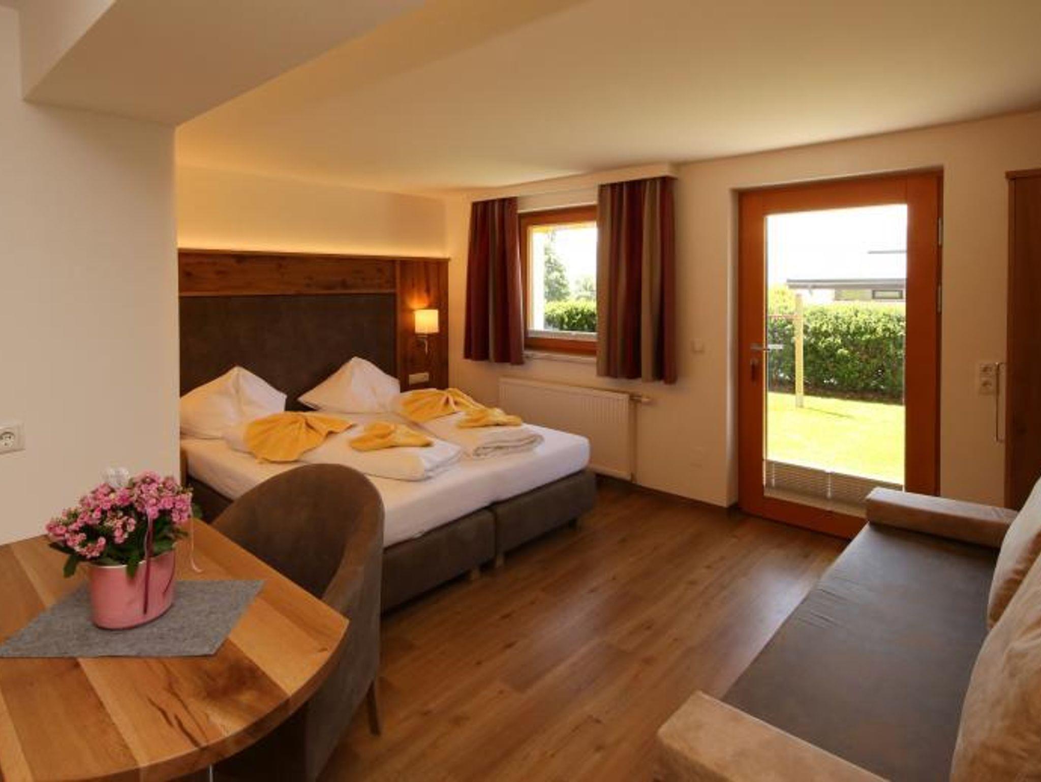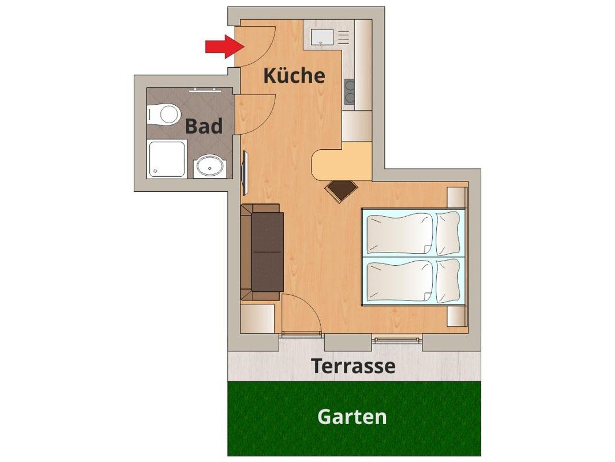 Das Zimmer hat eine nach Süden ausgerichtete großen Terrasse direkt in den Garten. Ideal zur Kombination mit Appartement 9 bei größeren Familien.