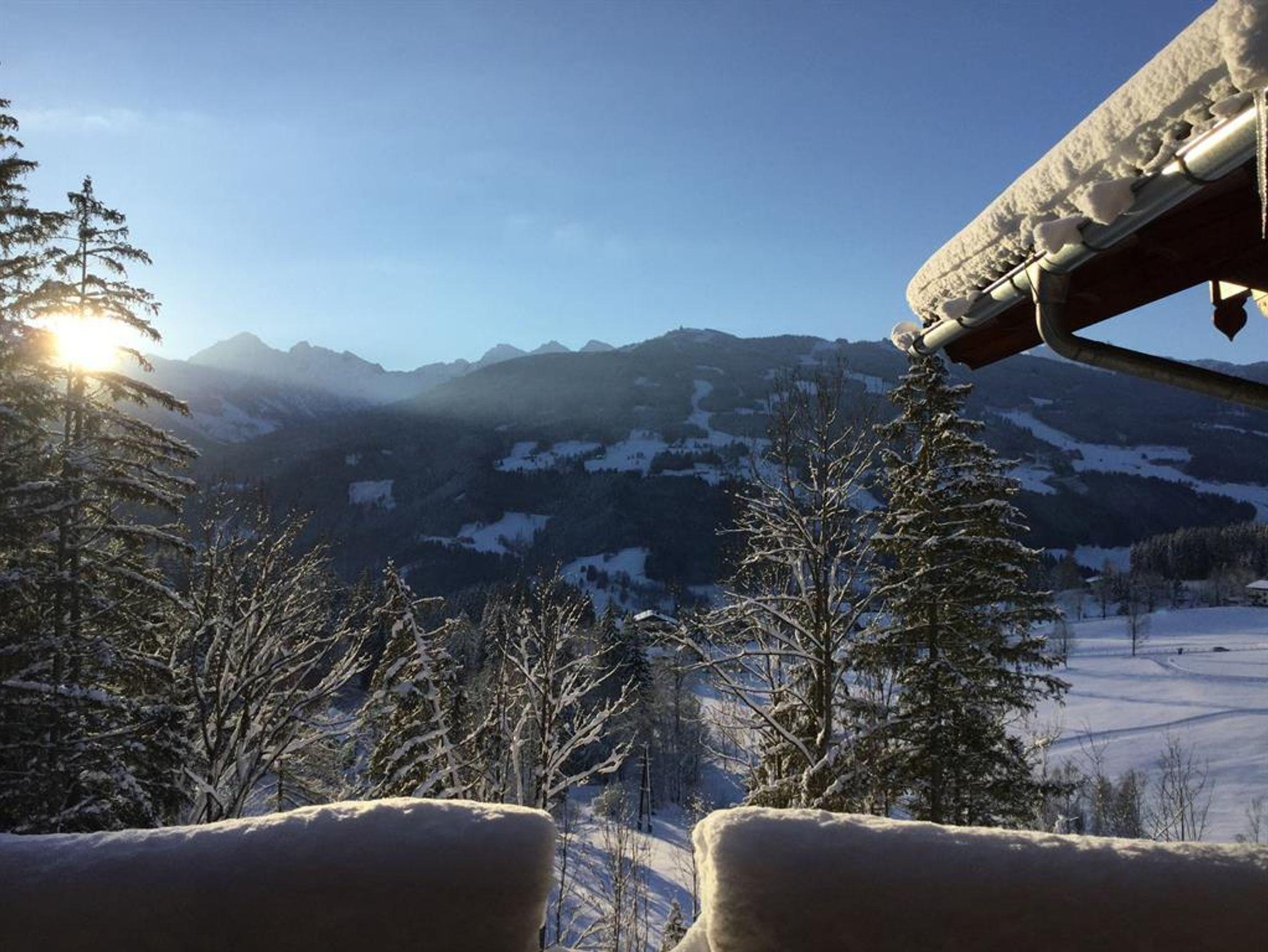 Die sonnigen Ferienwohnungen in unserem Haus Alpenblick sind mit rustikalen Holzmöbeln eingerichtet. Die Ferienwohnung Dachstein mit 72m² verfügt über zwei Badezimmer, eine vollausgestattete Küche inkl. Grill, Backrohr und Geschirrspülmaschine sowie eine gemütliche Sitzgelegenheit und einen nordseitigen Balkon. Auf der Südseite befindet sich der große Balkon mit viel Platz und einen fantastischen Ausblick auf die Schladminger Tauern.