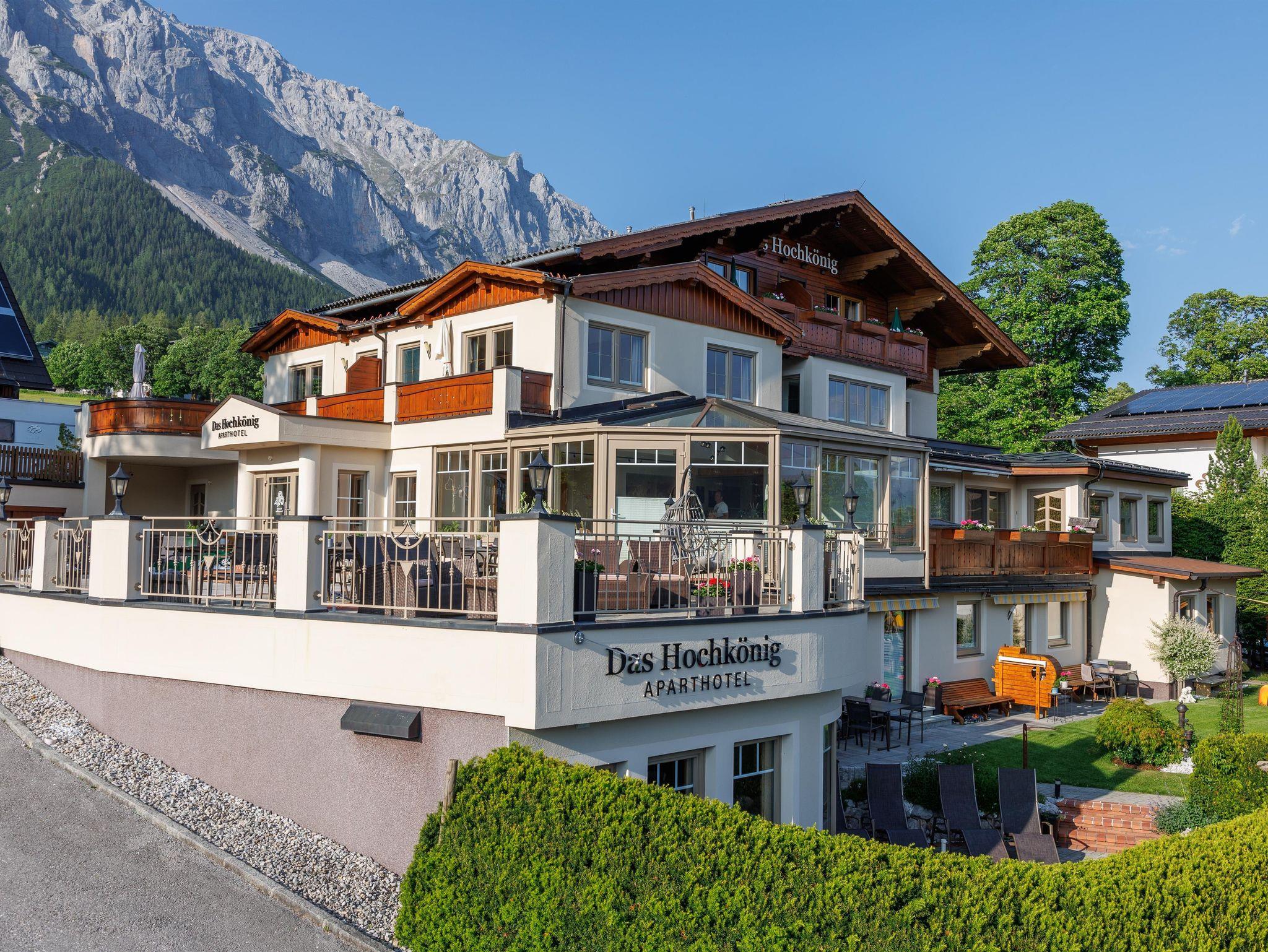 Im Herzen von Ramsau am Dachstein in der Urlaubsregion Schladming-Dachstein begrüßt Sie unser familiengeführtes Aparthotel DAS Hochkönig ganz herzlich. Unser Haus befindet sich im westlichen Ortsteil in Ramsau Schildlehen, direkt vorm Hausberg dem Rittisberg und umringt von grünen Wiesen. Abseits der Hauptstraße bieten wir Ihnen in ruhiger und idealer Lage den perfekten Ausgangspunkt für jegliche Aktivitäten und natürlich die Sommercard.