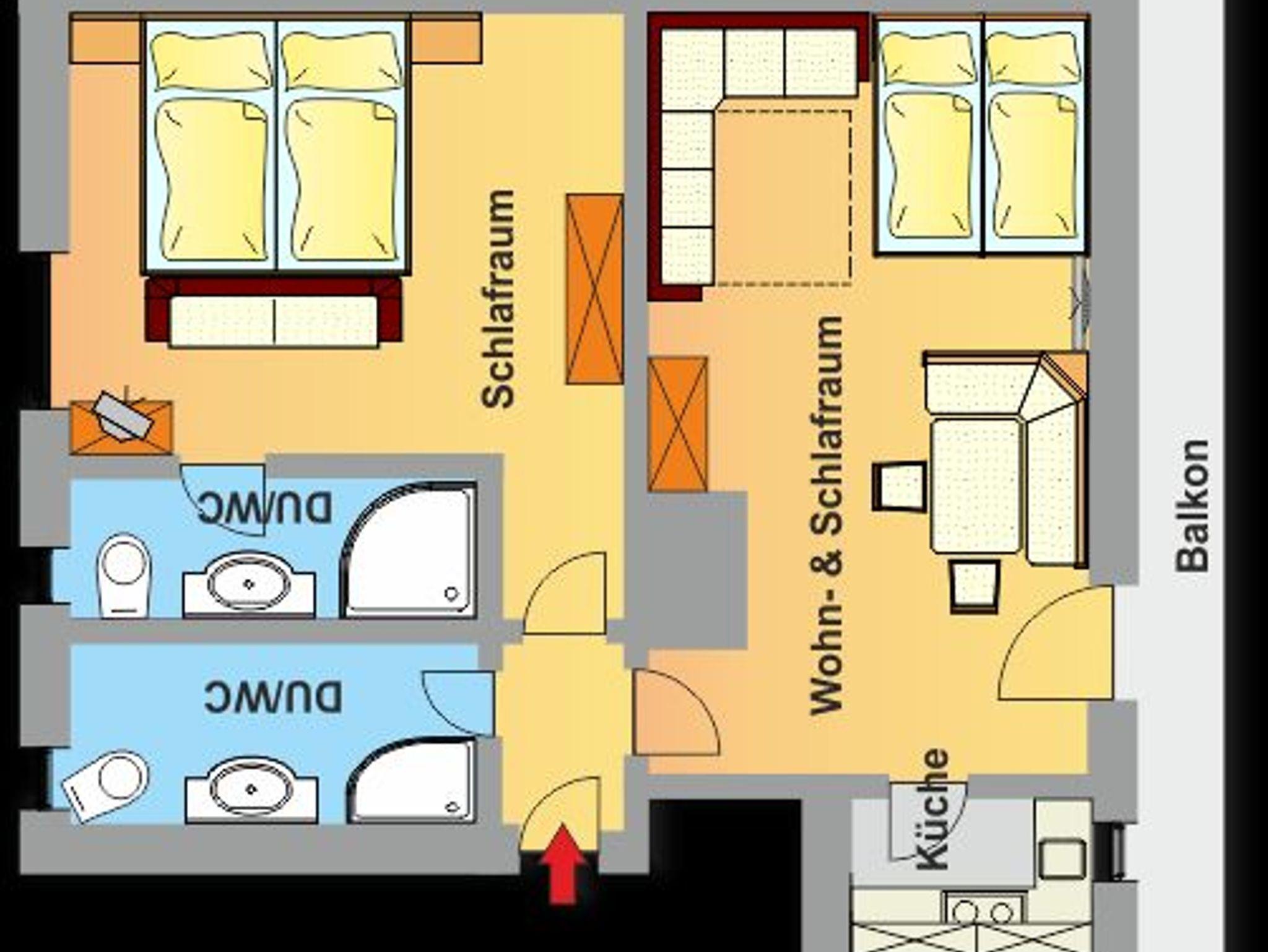 Ankommen und Wohlfühlen. Dieses große, voll ausgestattete Familienzimmer bzw. Appartement besteht aus einem Schlaf- und einem Wohnschlafzimmer (jeweils Doppelbetten) und und ermöglicht ein komfortables Wohnen für 2 - 6 Personen. Eine eigene Küche, sowie der nach Süden ausgerichtete Balkon sind die Grundlage für angenehmen Wohnkomfort. Zwei getrennte Dusch/WC-Einheiten ermöglichen auch mehreren Personen gemeinsames Wohnen ohne Einschränkungen.