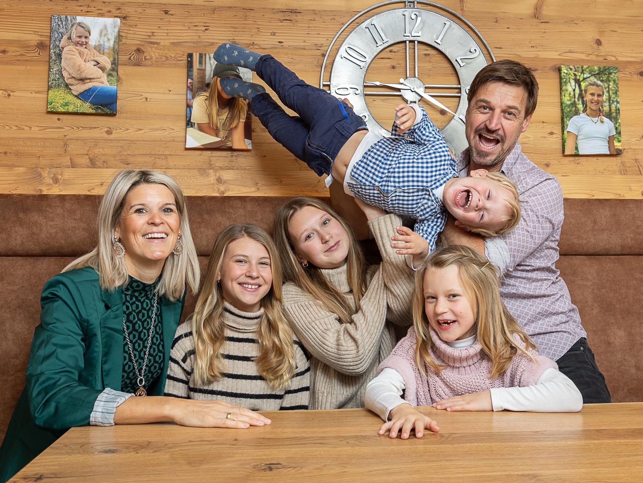 Ihre Gastgeberfamilie Michi und Brigitte, mit Sarah, Viktoria, Katharina und Michael und Seniorchefin Hanni.
