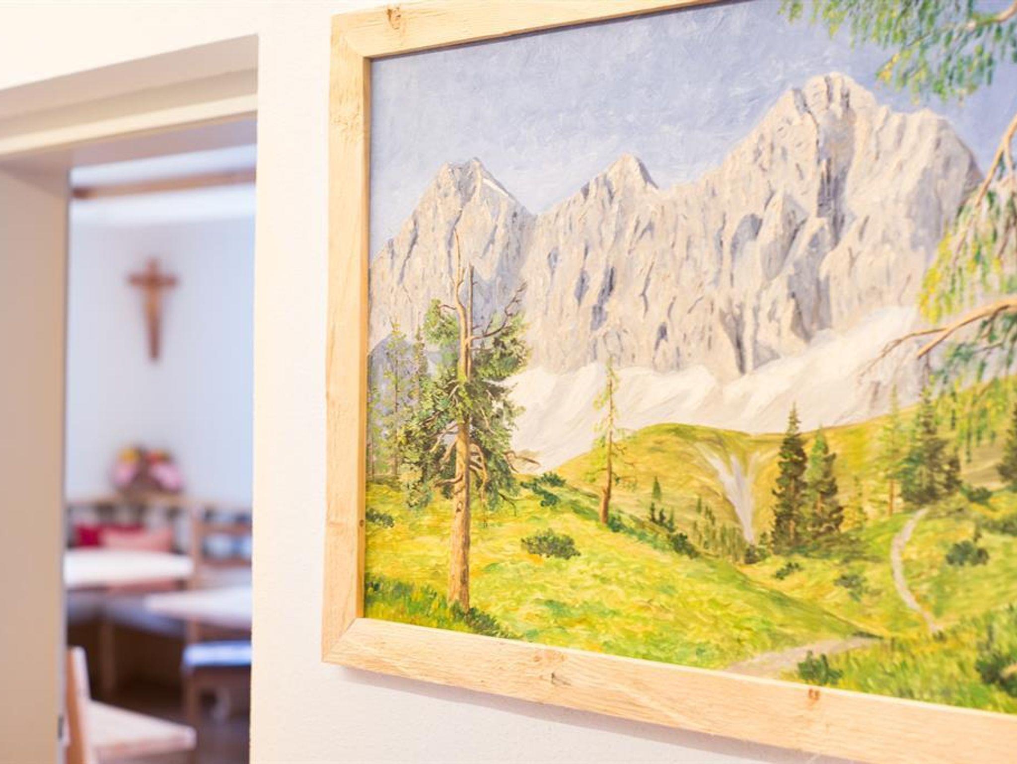 Zur Ruhe kommen und neue Kraft tanken in unserer gemütlichen Frühstückspension Haus Hermine am Hochplateau von Ramsau am Dachstein. Genießen Sie den phantastischen Ausblick auf die umliegende Bergwelt des Dachsteinmassivs und der Schladminger Tauern sowie auf die WM Skisprungschanze. Unser Haus liegt leicht oberhalb des Ortszentrums, umgeben von Wiesen und Feldern, in herrlich sonniger Lage am Hang und ist einfach mit dem Auto zu erreichen. Eine perfekte Unterkunft für Gäste die gerne Wandern, Langlaufen oder Skifahren.
