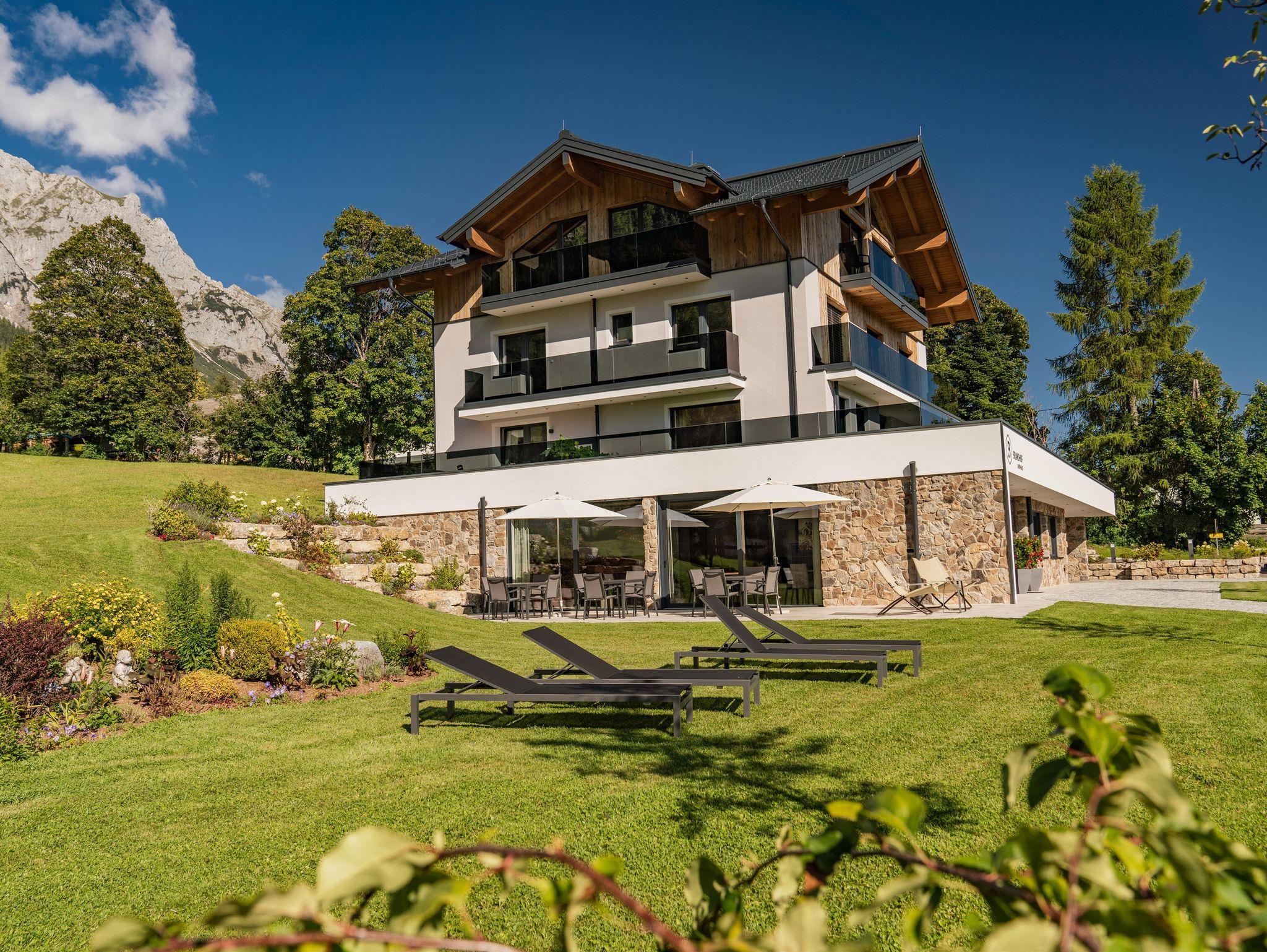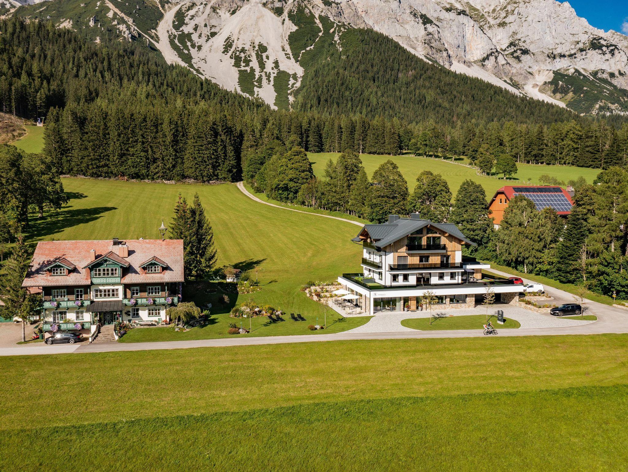 Das ausgebaute Dachgeschoss und Penthouse im Brandhof Landhaus sticht mit seinem hell beleuchtetem sichtbaren Dachstuhl, großen Fensterfronten mit einzigartigen Panoramablick sowie lichtdurchfluteten offenen Räumen hervor. Ein exkluives Raumangebot über 2 Schlafzimmer, 2 Badezimmer mit 2 WC, eine hochwertige ausgestattete Küche mitten in der Wohnung mit offenem Essbereich und gemütlichem Wohnraum versprechen eine unvergessliche Auszeit in den Bergen. Die finnische Sauna mit Blick auf das Dachstein Gebirge und die Schladminger Tauern ist eine exklusive Maßanfertigung aus heimischem Holz. Die Exklusivität wird durch den Aufzug mitten ind er Wohnung abgerundet.