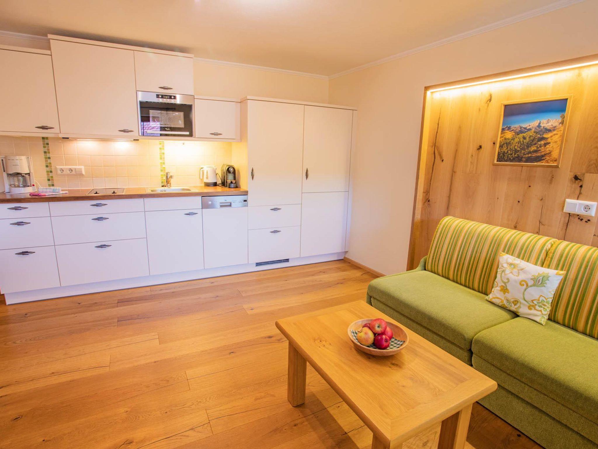 Wir bieten Ihnen vier geräumige 50 bis 70m² große und liebevoll eingerichtete Ferienwohnungen für 2-6 Personen. Jede der Ferienwohnungen empfängt Sie mit gemütlichen Schlafzimmern, einer voll ausgestatteten Wohnküche mit Geschirrspülmaschine, E-Herd, Mikrowelle, Kaffeemaschine und Eierkocher. Der helle und komfortable Wohnbereich lädt zum Entspannen ein. Genießen Sie am möblierten Balkon den herrlichen Ausblick auf die imposante Bergwelt von Ramsau am Dachstein.