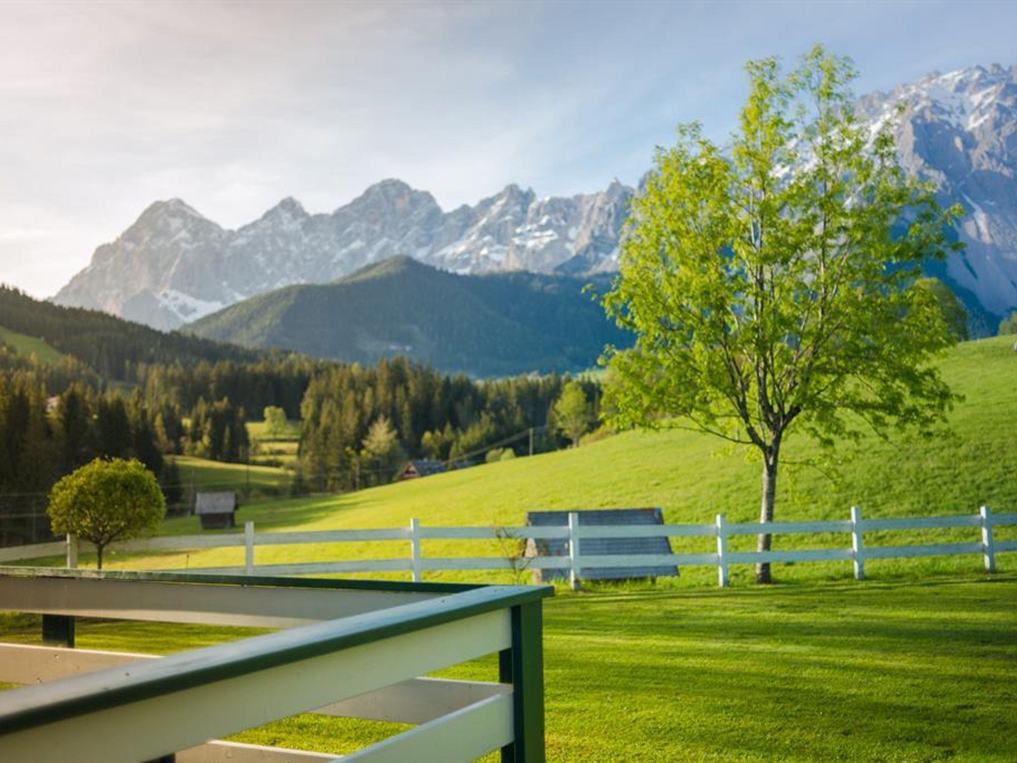 Genießen Sie die sonnige Lage im Ferienhaus mit Panoramablick auf den Dachstein und die wunderbare Landschaft der steirischen Ramsau im Herzen Österreichs. Hier gibt es ideale Voraussetzungen für einen abwechslungsreichen Aktivurlaub in den Bergen.