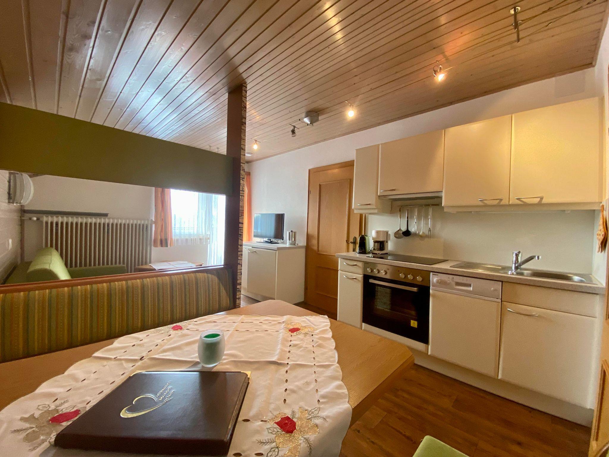 Die Wohnung (35m²) besteht aus einem Schlafzimmer mit Doppelbett, Wohnzimmer mit ausziehbarer Couch, Dusche/WC, komplett eingerichteter Küchenzeile, Kühlschrank mit Gefrierfach, Backofen, Mikrowelle, Geschirrspüler, Sat-TV, Telefon, südseitiger Balkon.