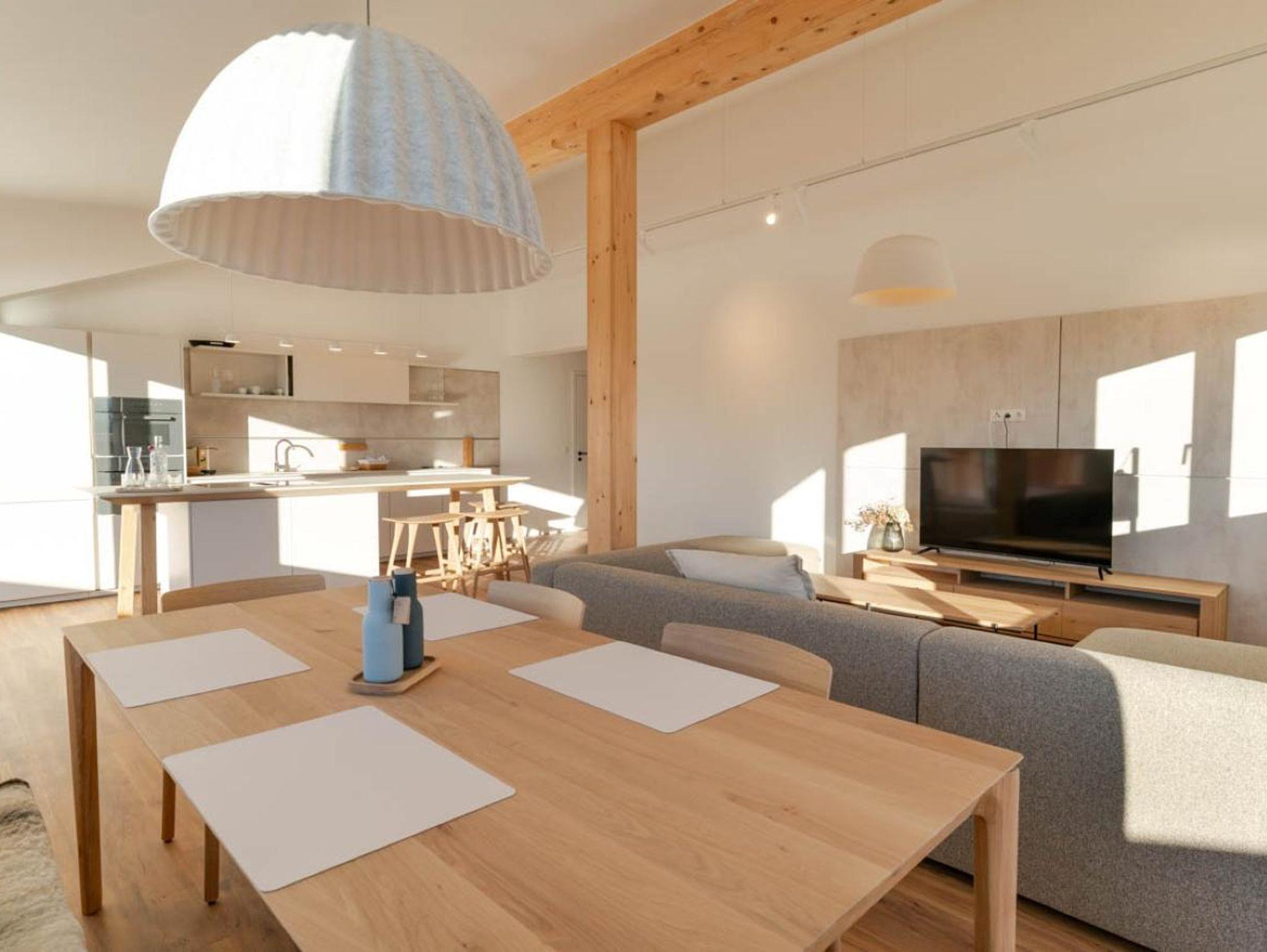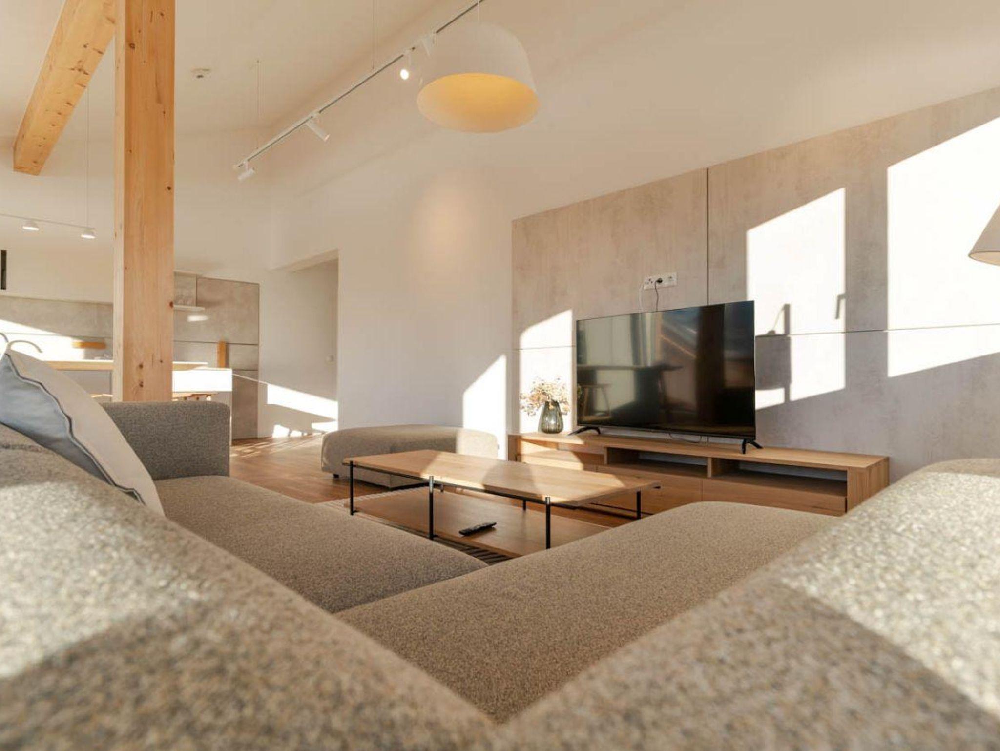 130m² / Penthouse / Wohnzimmer / 2 Schlafzimmer / 1 Badezimmer mit Dusche / 1 Badezimmer mit Badewanne / 3 WCs / Küche mit Miele-Geräten: Geschirrspüler, Mikrowelle, Backrohr, Herd, Kaffeemaschine / Kabel-TV / W-LAN / Bettwäsche / Handtücher / Dachräume und Terrasse 53m²