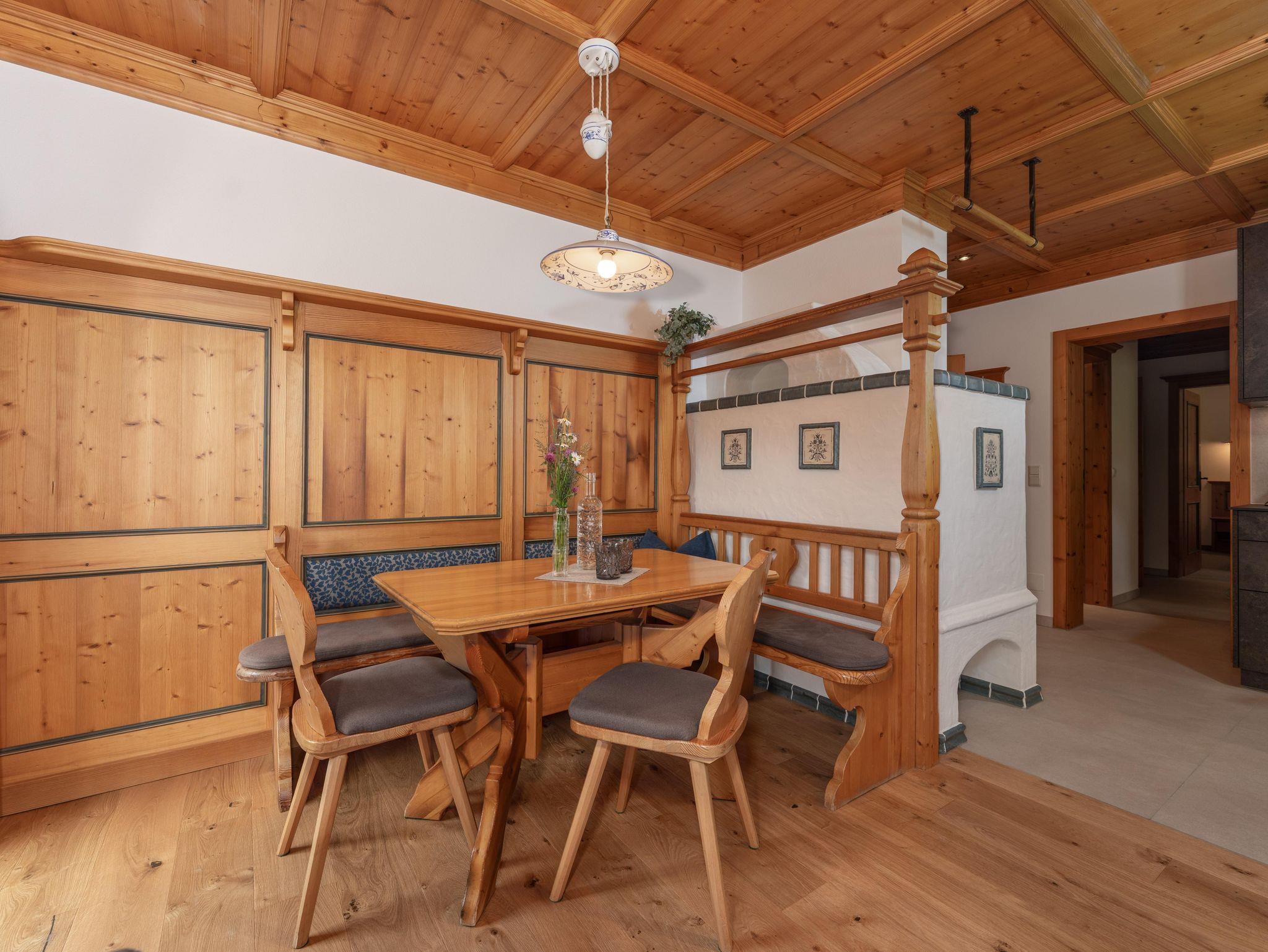 Das Appartement ist ausgestattet mit 2 Schlafzimmer, 1 Wohnzimmer mit Kachelofen, TV, Geschirrspüler mit Küche, Mikrowelle, E-Herd, Kühlschrank, 2 Bad/Dusche, 2 WC, Vorraum, Balkon und eigener privater Sauna