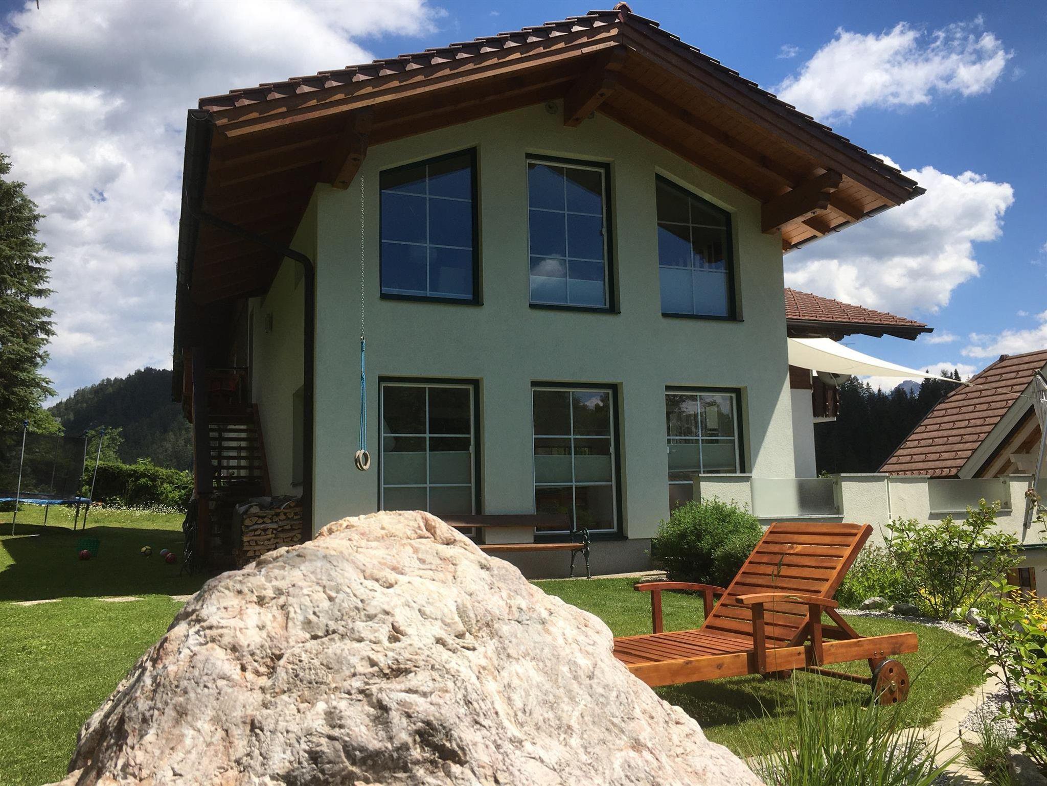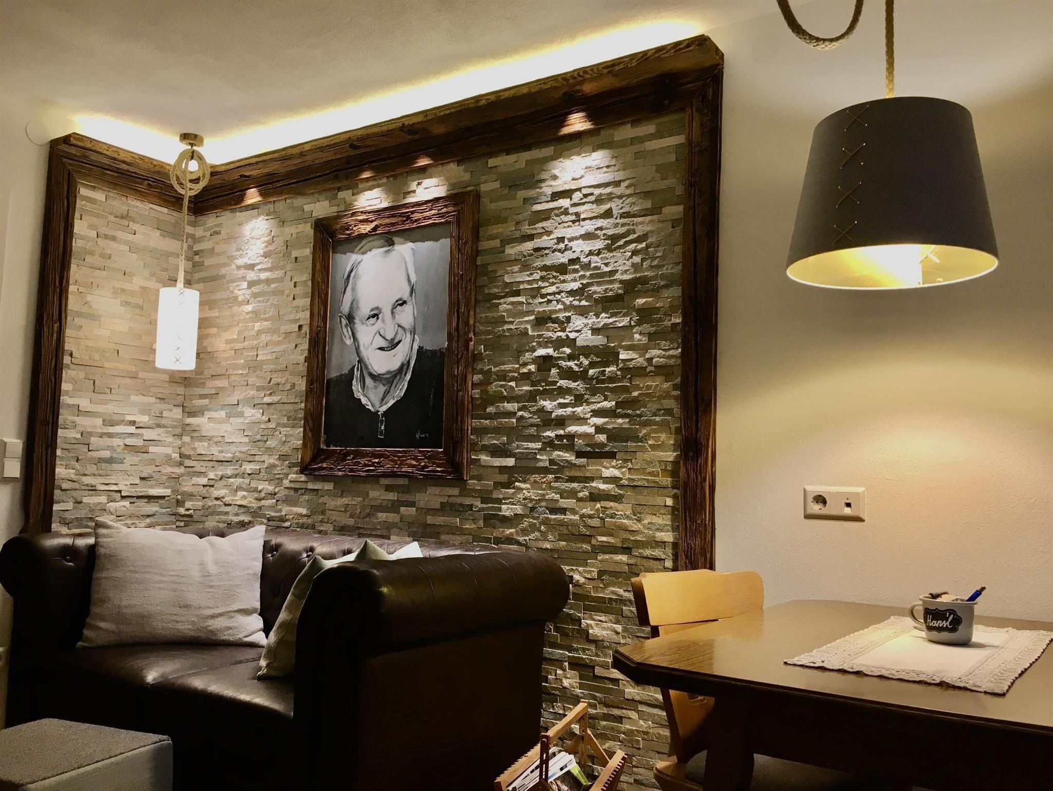 Das liebevoll eingerichtete Appartement Finis befindet sich im 1. Stock unseres Einfamilienhauses, besticht durch das großzügige Raumangebot mit fast 90 m² und bietet Platz für bis zu 3 Personen. Ein heller, offener Wohnbereich mit komplett ausgestatteter Küche, Esstisch, gemütlichem Wohnraum mit Kachelofen und komfortabler Wohnlandschaft mit großen Fenstern sowie eigenem Gartenzugang ermöglichen einen herrlichen Ausblick auf das Bergmassiv. 1 Schlafzimmer mit Umkleide, Badezimmer mit Dusche/WC sowie Vorraum stehen den Gästen zur Verfügung.Zudem verfügt das Appartement über einen separaten Eingang, eigener Parkplatz sowie Ski- bzw. Bikeraum.