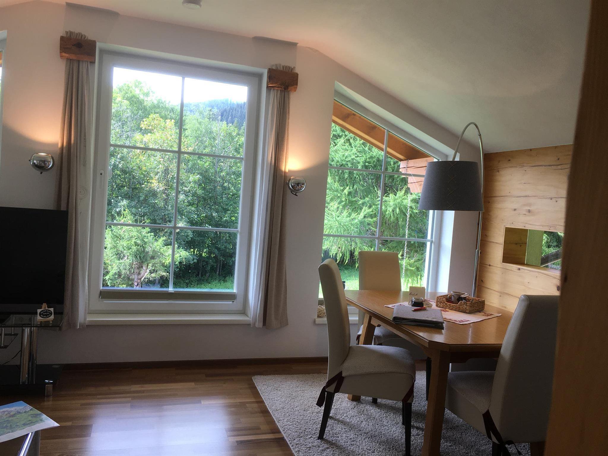 Das liebevoll eingerichtete Appartement Finis befindet sich im 1. Stock unseres Einfamilienhauses, besticht durch das großzügige Raumangebot mit fast 90 m² und bietet Platz für bis zu 3 Personen. Ein heller, offener Wohnbereich mit komplett ausgestatteter Küche, Esstisch, gemütlichem Wohnraum mit Kachelofen und komfortabler Wohnlandschaft mit großen Fenstern sowie eigenem Gartenzugang ermöglichen einen herrlichen Ausblick auf das Bergmassiv. 1 Schlafzimmer mit Umkleide, Badezimmer mit Dusche/WC sowie Vorraum stehen den Gästen zur Verfügung.Zudem verfügt das Appartement über einen separaten Eingang, eigener Parkplatz sowie Ski- bzw. Bikeraum.
