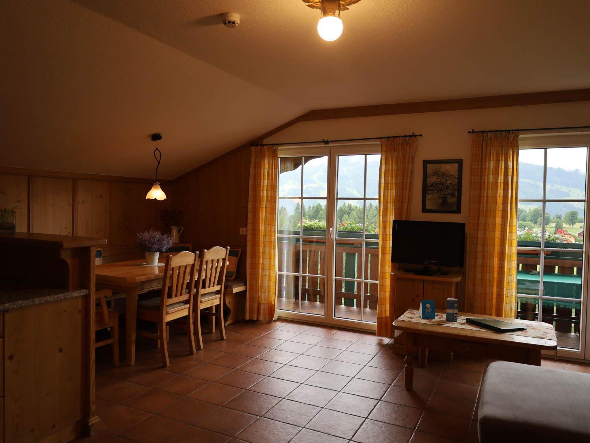 Unsere komplett eingerichteten und komfortablen Ferienwohnungen für 2-5 Personen bieten Ihnen einladende Schlafzimmer, moderne Badezimmer mit separatem WC, einen großen Wohnschlafraum mit Balkon und wunderschönem Panoramablick auf die umliegende Berglandschaft. In der voll ausgestatteten Küche mit gemütlicher Sitzecke genießen Sie gesellige Urlaubstage mit Freunden und Familie. Jede Ferienwohnung ist auch mit unserem köstlichen Frühstück oder Halbpension buchbar.