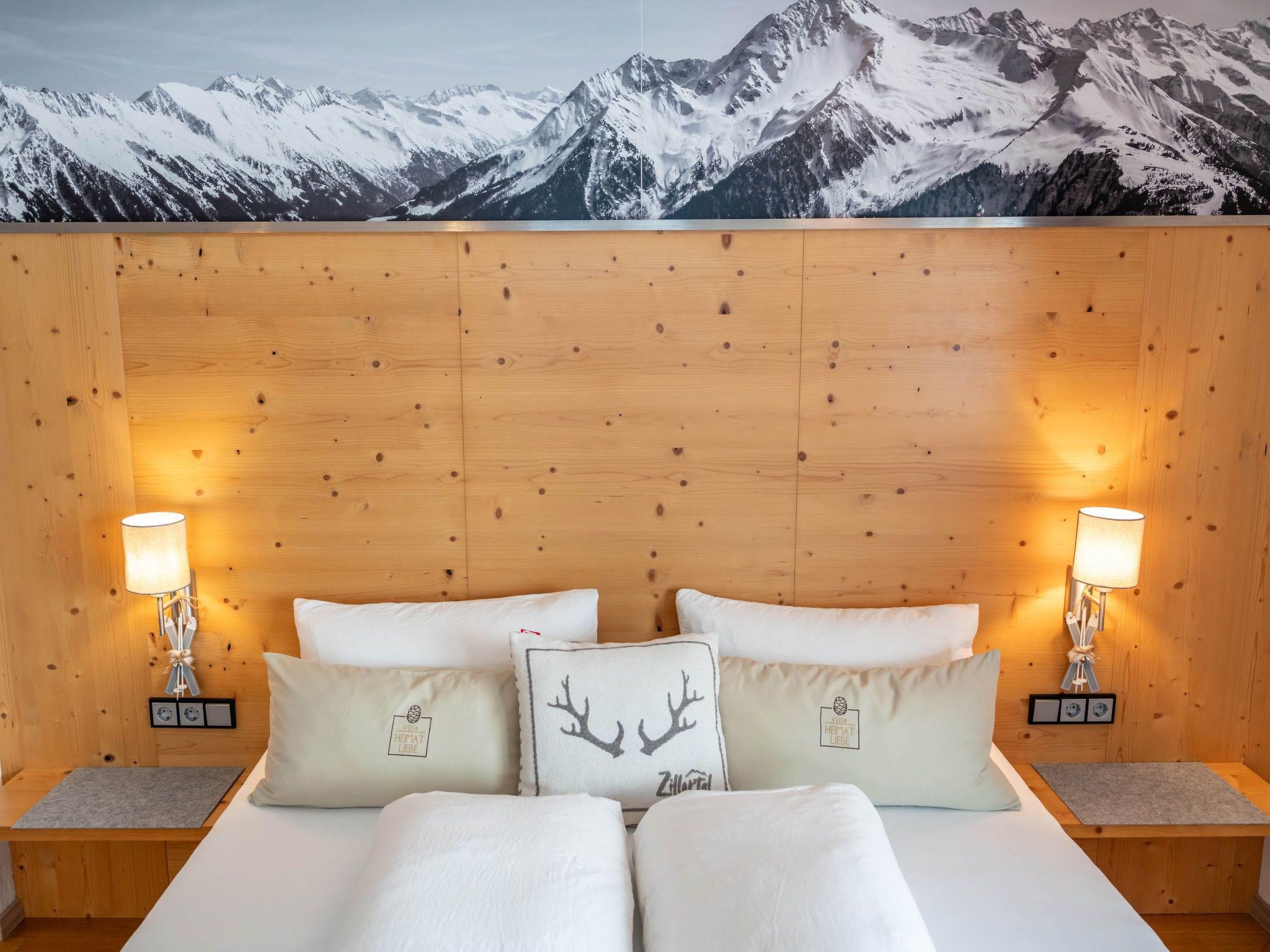 A holiday home in absolute hotel quality and all to yourself. A fenced garden of approx. 500 m² is part of the holiday paradise. You live on 250 m² over 3 floors. The villa has a 60 m² living room with adjoining conservatory, dining table and cosy sofa and lounge furniture for relaxing. 6 bedrooms, 2 bathrooms, 2 separate toilets and a fully equipped kitchen. In the basement there is a small spa area with Finnish sauna, shower and WC. There is also a relaxation room and a billiard room. You can reach the ski and bike depot directly from the car park at ground level. Mountains as far as the eye can see. This awakens the desire to experience this marvellous natural landscape with all your senses. An active holiday in the Zillertal is just what you need. Set off to the Villa Heimatliebe. Surrounded by lush green alpine pastures, pure mountain air and the indescribably beautiful mountain landscape of the Zillertal Alps, you will experience unforgettable moments in nature. Thanks to the wide range of activities on offer, such as hiking and climbing tours, Nordic walking or walks, you will always find something here to make your holiday entertaining. And if you don't feel like hiking, why not lie down in a deckchair and enjoy the magnificent mountain views from the garden? Bike paradise Zillertal The magical power of the mountains can also be felt on a bike. From a mountain bike you can experience nature from a completely different perspective, but this does not detract from its fascination. The tranquillity around our house is our strength...and it also strengthens you Magical Alpine views ...a unique panorama, in front of you, the Ahornplateu, Grünberg, Penken, Rastkogel, Zillertaler Höhenstraße on the Melchboden ... Inspiration from nature The garden world You have probably the most fascinating distant view of the Zillertal Alps from your private garden, where our 500 m² garden is located. Here on the sunbathing lawn you can let your thoughts wander, relax your mind, breathe in the fresh air and find the inner peace you have always longed for.