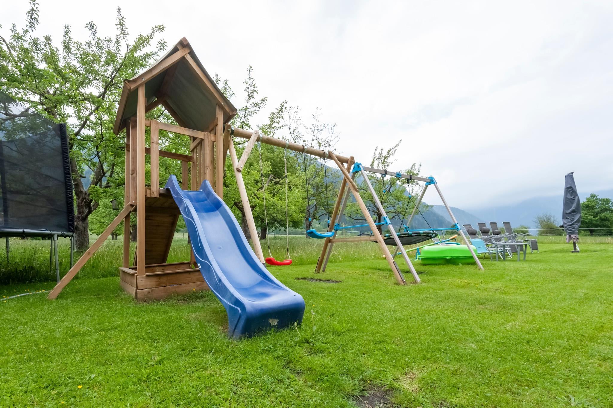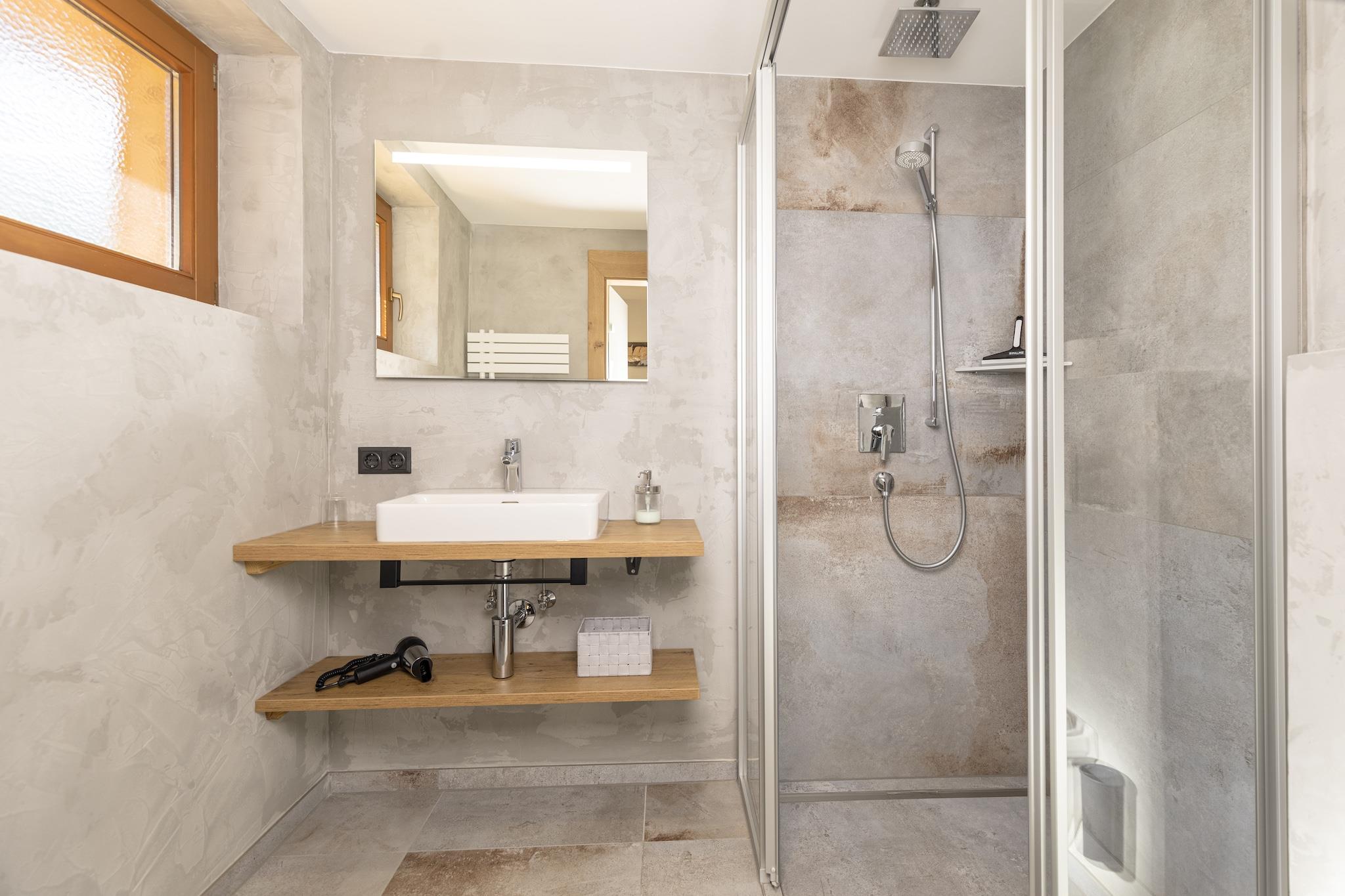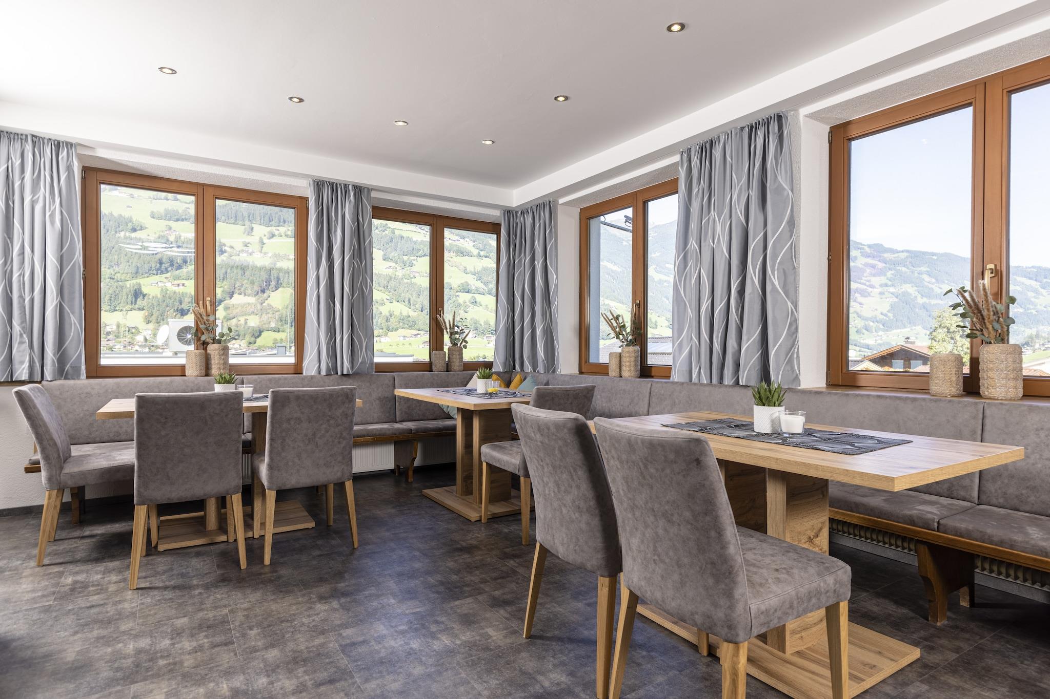 Feriehus til 18 personer i Ramsau im Zillertal Vinter: Busstoppested 150 m væk, der kører til Zillertal Arena! Feriehuset MOIKLERHOF ligger solrigt og med panoramaudsigt i Ramsau im Zillertal, i Bichl-distriktet, 3,5 km fra Mayrhofens centrum og 1,5 km fra Ramsaus centrum. Restauranter og butikker ligger i Ramsaus centrum. Afstande til alle offentlige faciliteter inkluderer Penken-svævebanen (4,5 km), Horberg-svævebanen (1,5 km) og et supermarked (1 km). Restauranter ligger cirka 200 m væk. Om sommeren er adgang til de udendørs swimmingpools i Hippach og Mayrhofen inkluderet. 5000 m² grund med havemøbler og legeredskaber står til rådighed. Der er også et stort fællesrum med et nyt, moderne køkken, en legeplads og et udvalg af spil. Huset har to altaner. Parkering på grunden er gratis. Gården drives som en mejerigård og ligger cirka 50 meter fra feriehuset. Produkter kan købes direkte fra gården. Huset blev fuldstændig renoveret i foråret 2021. Der er fem værelser på første sal og tre på anden sal, hver med bruser og toilet, satellit-tv, gratis Wi-Fi og balkon. En infrarød kabine til to personer er også tilgængelig i det nye wellness-rum. Ejeren og hans familie bor på første sal (samme trappe), og ejerens forældre bor i stueetagen. Interiør 9-værelses hus fordelt på tre etager med cirka 350 m². Stueetage: Separat indgang til gangen. Stor stue (ca. 90 m²) med spiseplads (hjørnebænke, stole), en komfortabel sofa, satellit-tv og et legeområde. Et køkken adskilt af en kogeø (4 keramiske kogeplader, 2 ovne, mikrobølgeovn, opvaskemaskine, 2 køle-/fryseskabe, stor filterkaffemaskine, elkedel, brødrister og pålægsmaskine) giver adgang til spisekammeret. 2 toiletter/håndvaske. 1. sal: 2 dobbeltværelser, hver med bruser/toilet. 2 soveværelser, hver med en dobbeltseng, en enkeltseng og et bruser/toilet. Enkeltværelse med bruser/toilet. 2. sal (delvist let skrånende tag): 2 dobbeltværelser, hver med bruser/toilet. Et soveværelse med en dobbeltseng, en enkeltseng og et bruser/toilet. Alle værelser er udstyret med satellit-tv, gratis Wi-Fi og hårtørrer. Balkonadgang fra alle soveværelser.