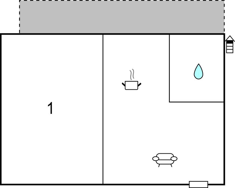 Opholdsstue/køkken - 1 Soveplads. (Sofa, madras eller lignende).