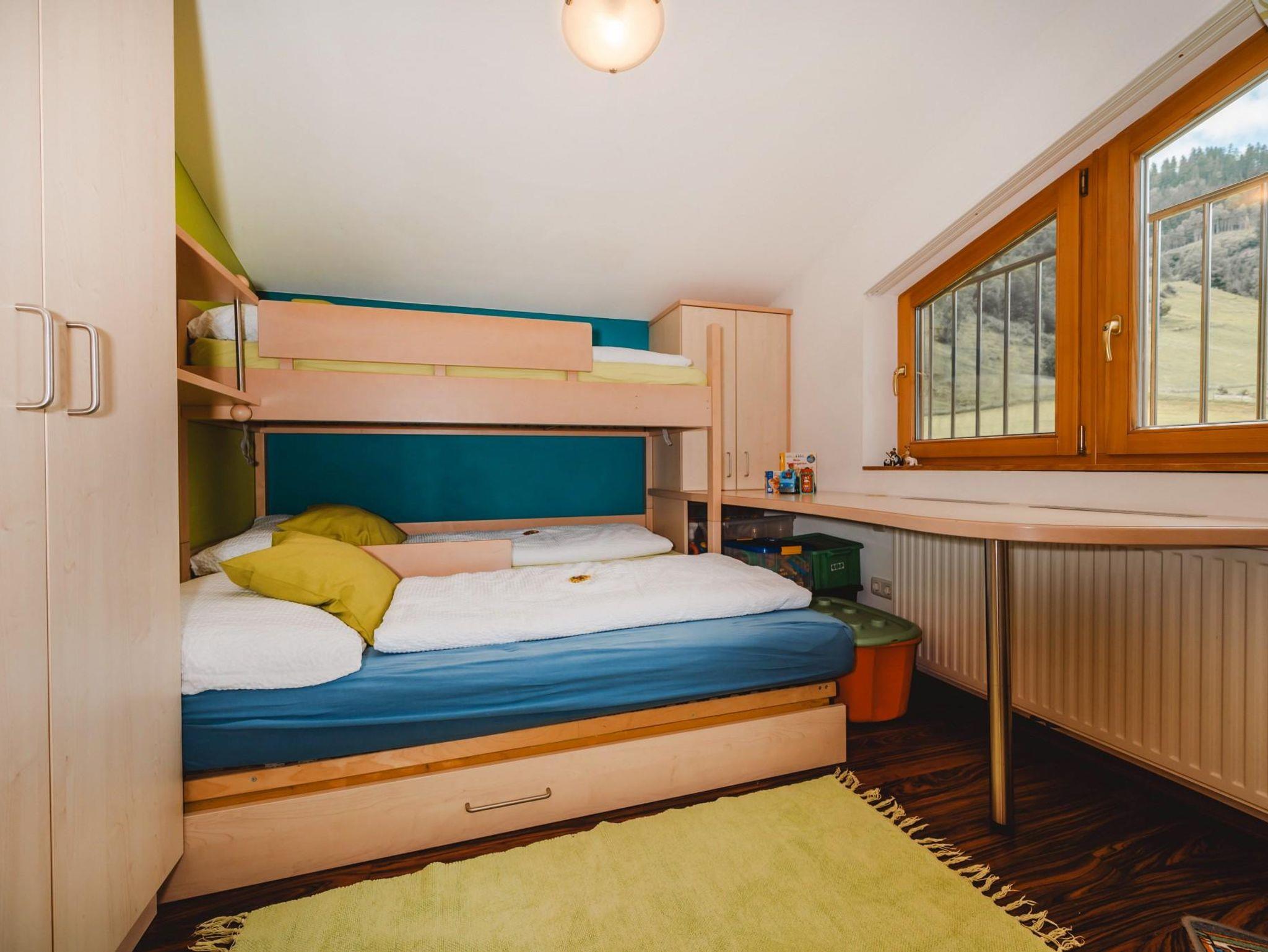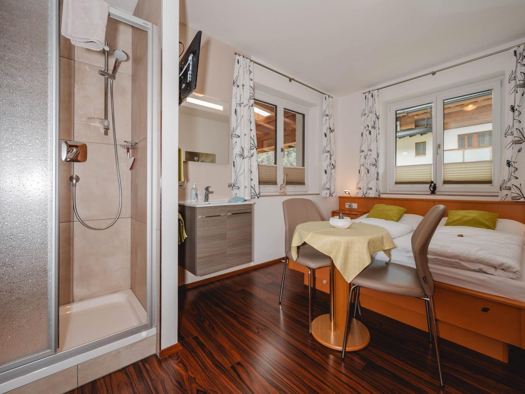 Voll ausgestattetes Appartement im 1 Stock mit 1 Schlafraum, 1 Kinderzimmer mit Stockbett, Zusatzbett möglich und 1 Couch zum Ausziehen im Wohnzimmer, Badezimmer mit Dusche/Badewanne, sep. WC, 1 Doppelzimmer befindet sich im Erdgeschoss mit DU/WC, im Sommer inkl. Nationalparkcard!