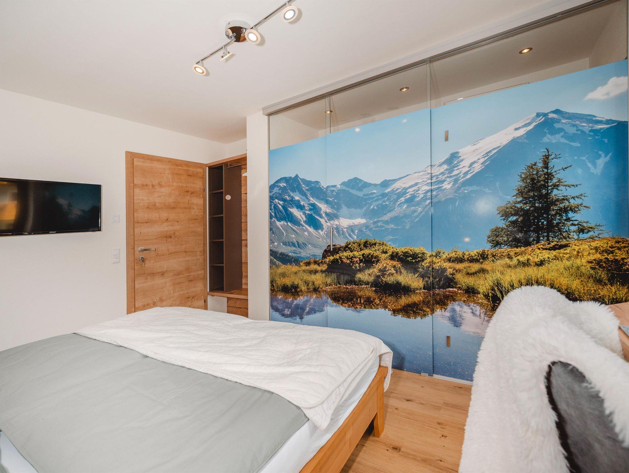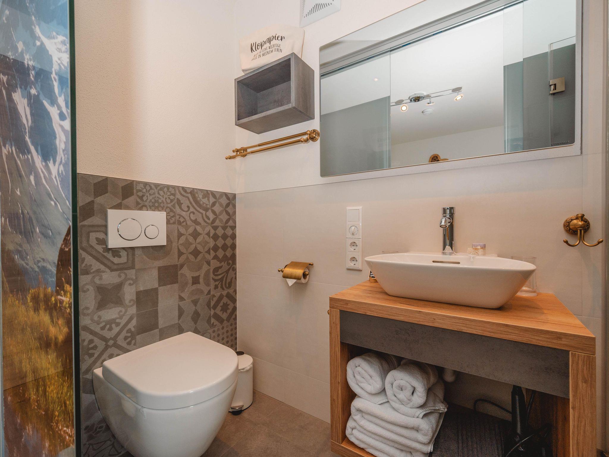 Unser neues, lichtdurchflutetes Doppelzimmer bietet vom Frühjahr bis zum Spätsommer angenehmes Morgenlicht. Eine stilvolle Glaswand mit Rauriser Bergwelt-Motiv und Schiebetür trennt das Zimmer vom modernen Bad mit ebenerdiger Dusche, WC und Infrarotspiegel. Zwei Barhocker und eine breite Fensterbank laden zum Lesen, Schreiben, Kaffeetrinken oder Fernsehen ein. Der großzügige Ostbalkon eröffnet den Blick auf die umliegenden Berge und die ruhige Straße sodaß er zum Verweilen einlädt. Auf Wunsch servieren wir ein Frühstück am Zimmer in Form eines liebevoll zusammengestellten Frühstückskorbs.Auf Anfrage stellen wir gern einen kleinen Kühlschrank bereit.Das Doppelzimmer kann auch als zusätzliches Schlafzimmer zum Apartment dazugebucht werden.