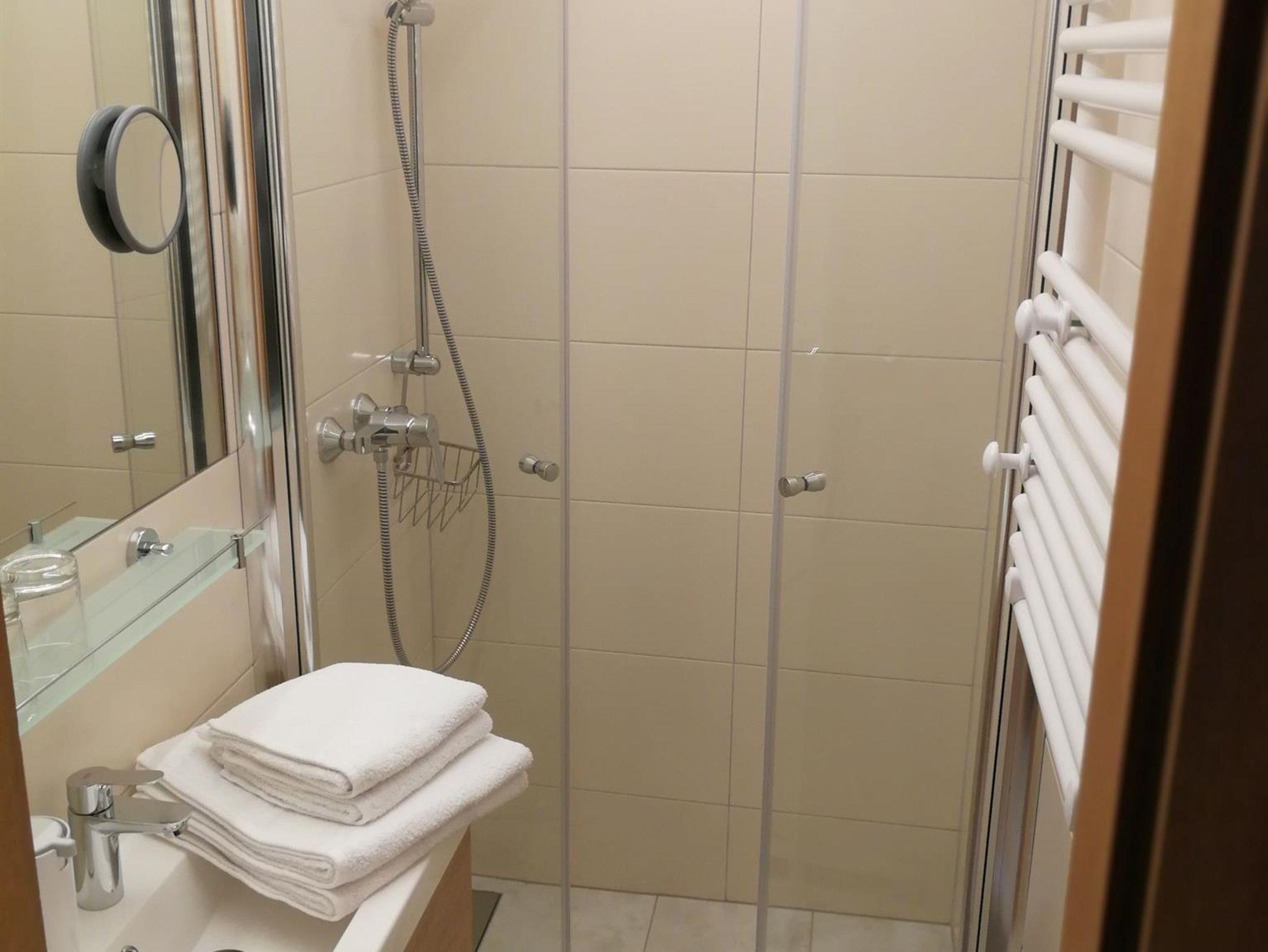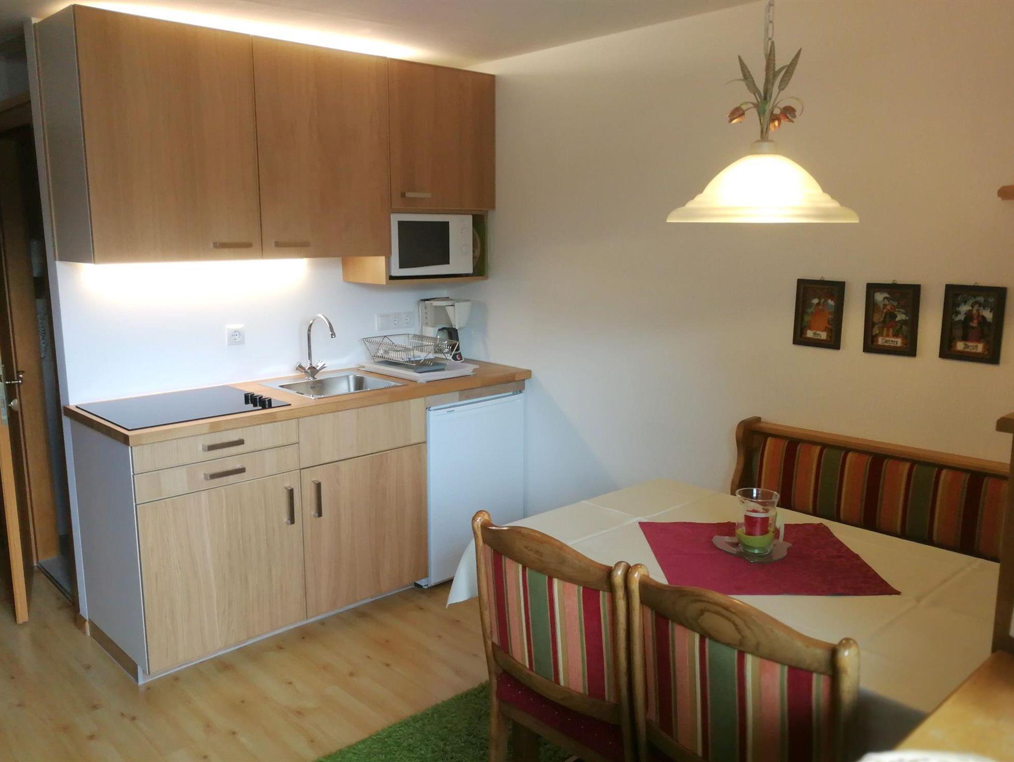 Gemütliches Apartement für 2-4 Personen (ca. 40 m2) Vorraum, Wohnraum mit Küchenzeile und Essbereich sowie eine Couch und Flachbild-TV, Schlafzimmer mit Doppelbett, Kinderbett (bis 2 Jahre), Badezimmer mit Dusche, separates WC, sehr schöner und breiter südseitiger, möblierter Balkon;