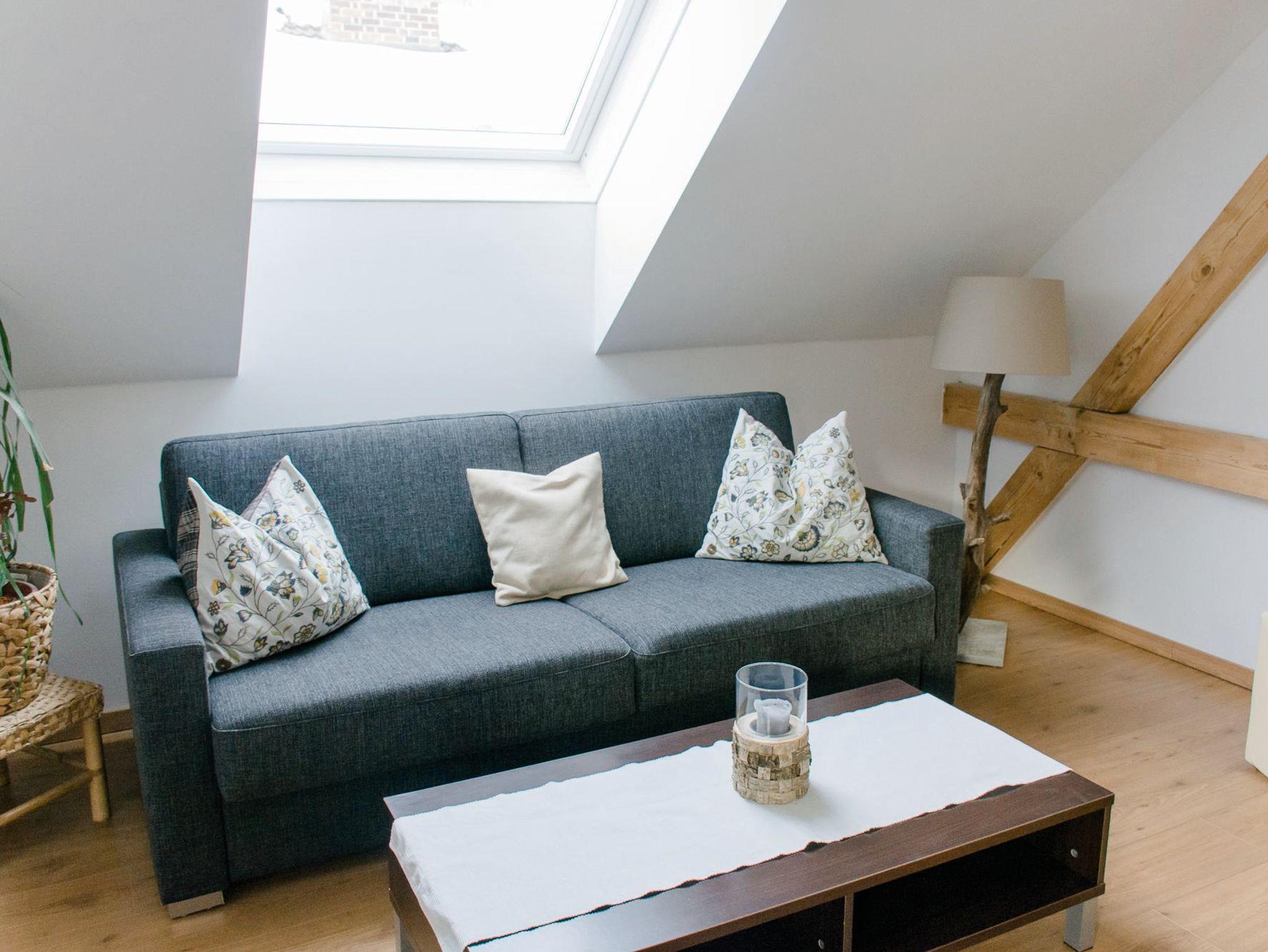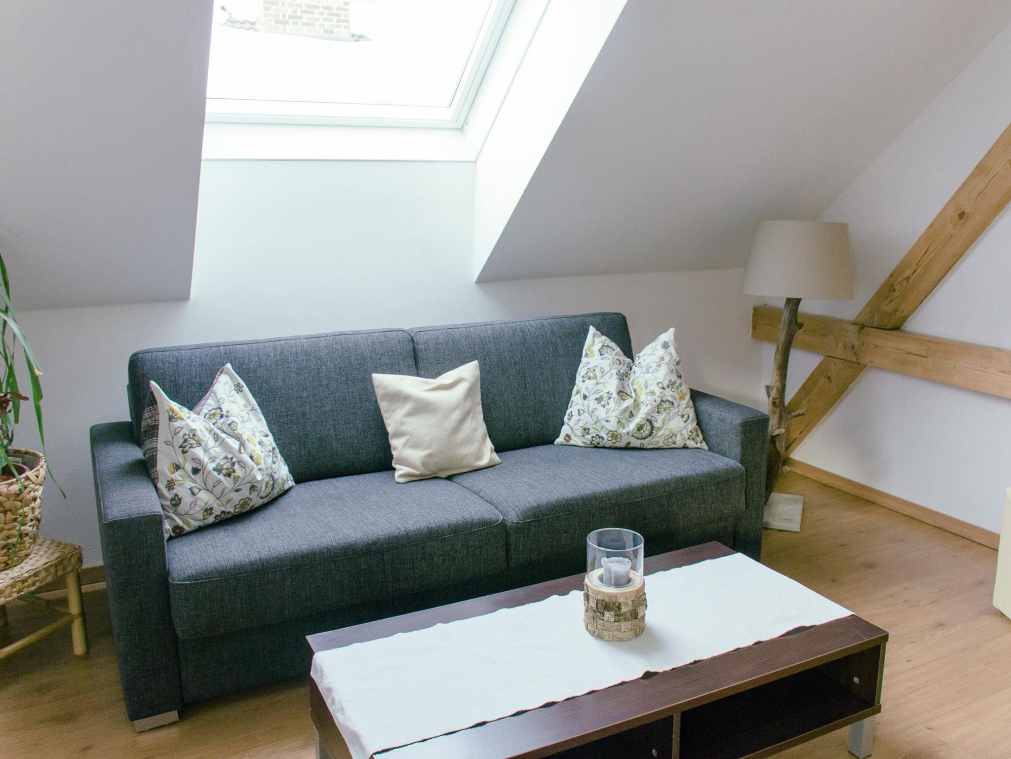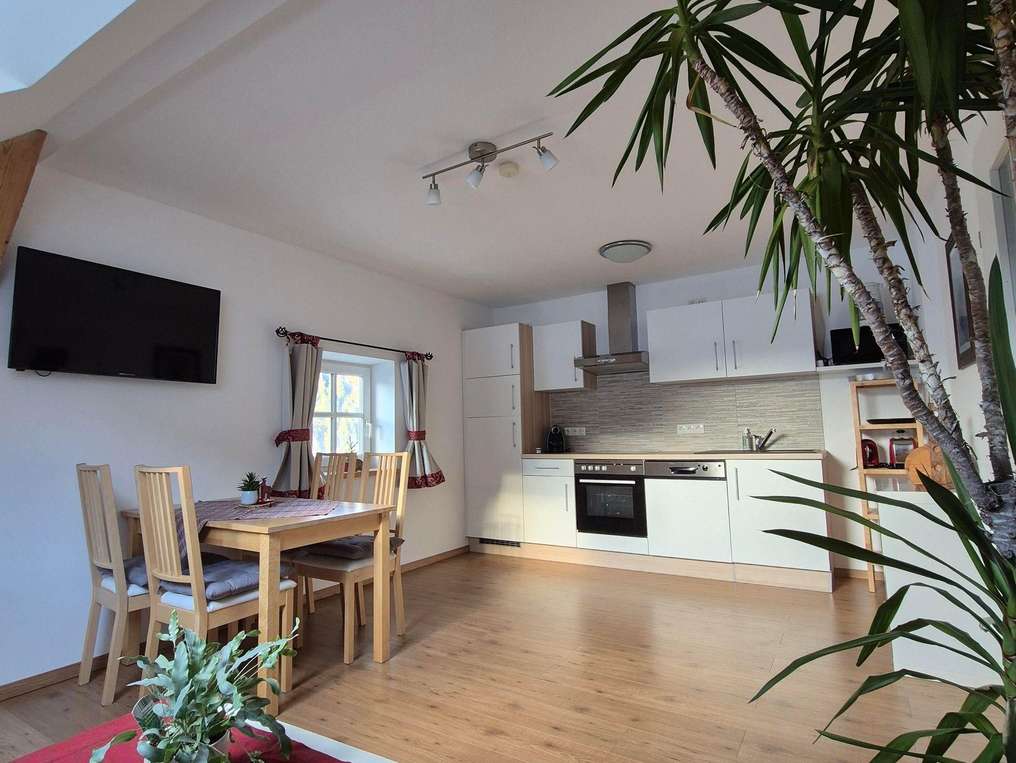Das Appartement ist hell, freundlich und sehr komfortabel ausgestattet. Es verfügt über ein Schlafzimmer mit Doppelbett, einer Wohnküche mit ausziehbarer bequemer Sofalandschaft. Die Küche ist sehr gut ausgestattet (Kaffeemaschine, Wasserkocher, Toaster, Backrohr, Geschirrspüler, Ceran-Kochfeld, Kühlschrank mit Gefrierfach).