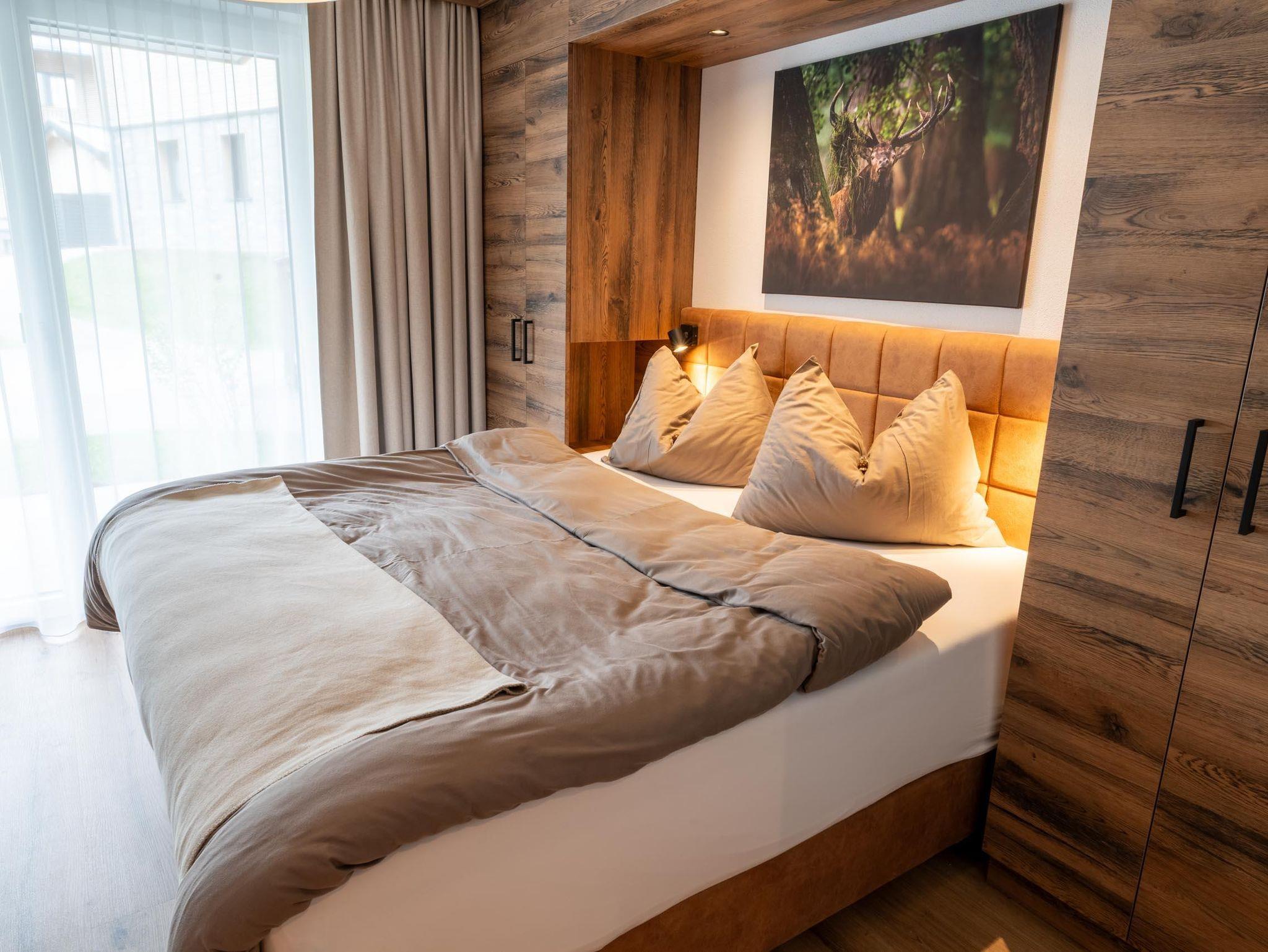 Die Tauernquelle Suite im Alpengold Rauris bietet auf rund 100 m² Platz für bis zu 8 Personen und verbindet Luxus, Privatsphäre und Komfort. Drei gemütliche Schlafzimmer und zwei stilvoll ausgestattete Badezimmer – eines mit privater Sauna – sorgen für entspannte Rückzugsmöglichkeiten. Der helle Wohnbereich mit offener Küche und österreichischer Sitzecke lädt zum gemeinsamen Verweilen ein. Große Schiebetüren führen auf die großzügige Terrasse mit beeindruckendem Bergpanorama. Frühstück ist inklusive: Aufschnitt, Milch und Saft stehen bereit, frische Brötchen werden täglich geliefert.