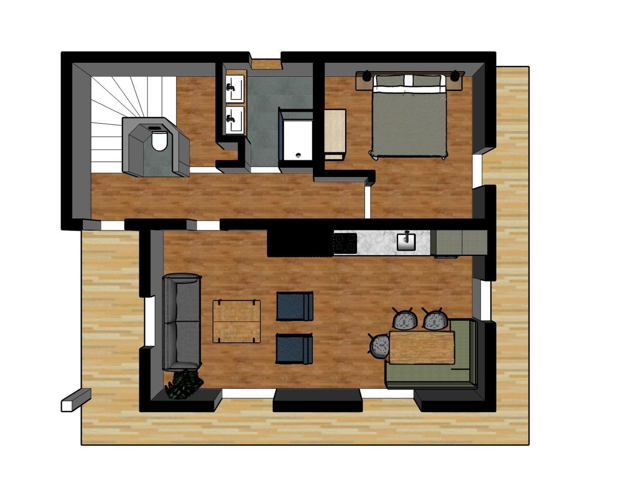 8-Personen-Wohnung. Die größte Wohnung befindet sich im ersten und zweiten Stock. Mit einer Fläche von 120 m2 ist sie sehr gut für größere Gesellschaften von 4 bis 8 Personen geeignet.