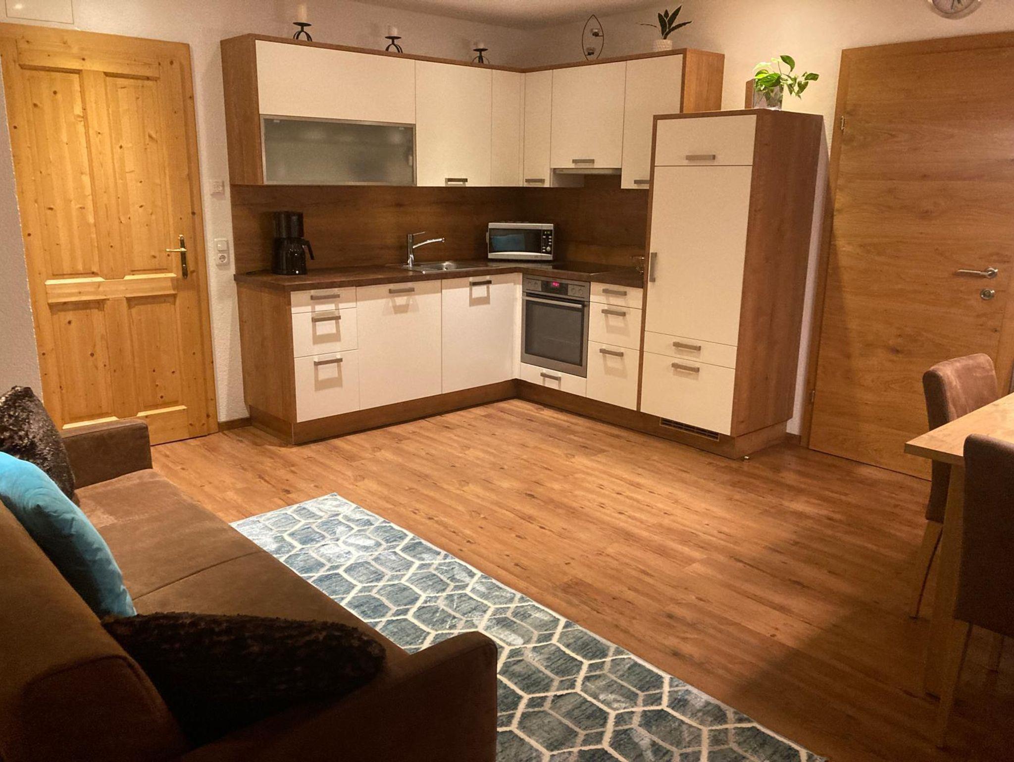 Große Ferienwohnung mit Balkon, südseitig mit Blick zu den Bergen, ab 4 Personen zwei getrennte Schlafräume und zwei Bäder, bei zwei Personen nur ein Schlafraum und ein Bad, Küche großzügig eingerichtet mit Backrohr und Gesschirrspüler sowie Mikrowelle, Wohnraum mit TV, kostenloses WLAN, im Sommer gibt es die Nationalparkkarte gratis daziu.