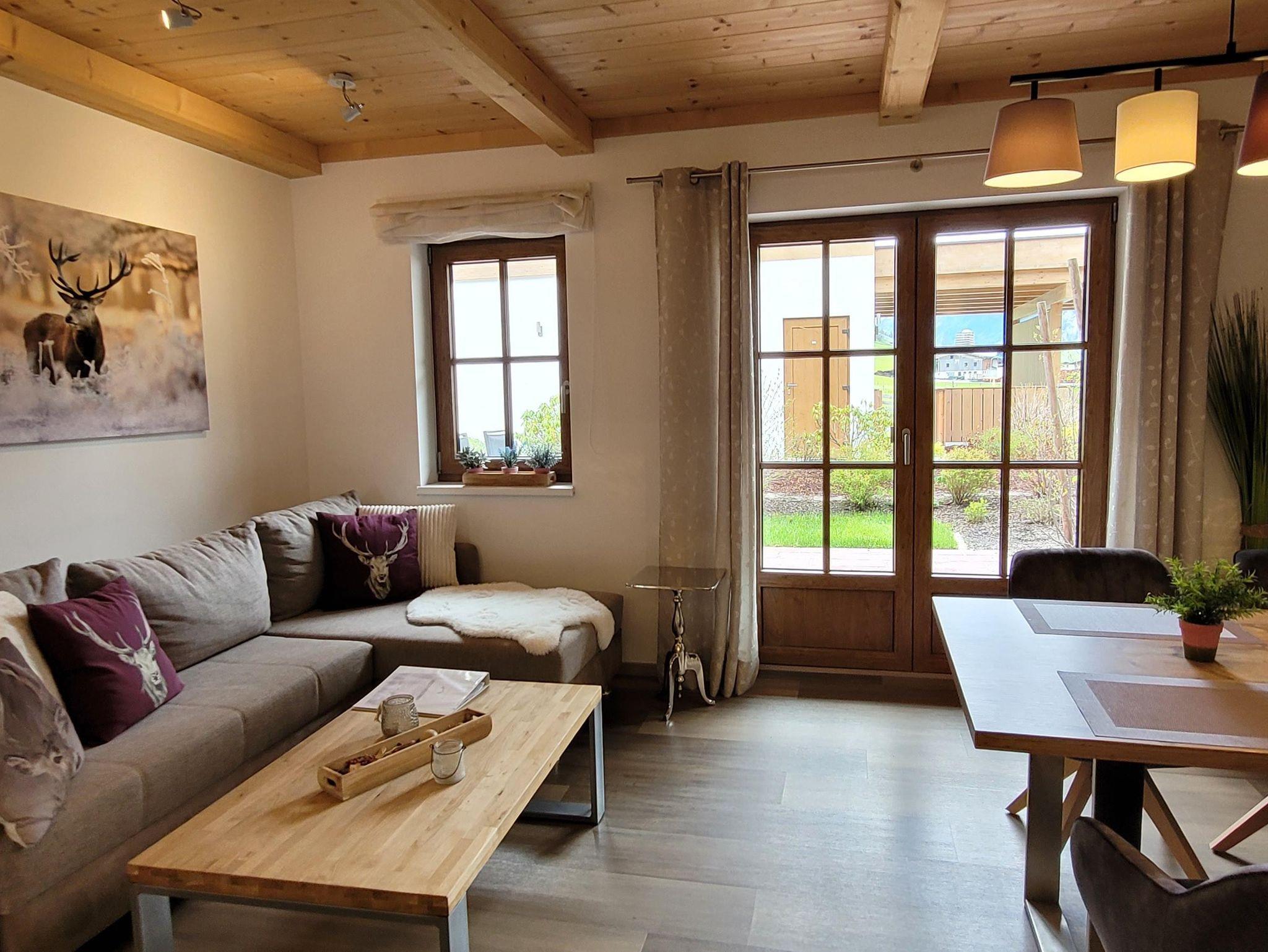 Das Appartement befindet sich im Erdgeschoß und hat 2 Schlafzimmer mit Boxspringbett, Schrank, großem TV Flachbildschirm, ein Schlafzimmer hat zusätzlich einen nach Süden ausgerichtete Terrasse. Darüber hinaus haben wir ein modernes und gemütliches Bad mit Fenster. Wenn Sie von Ihren Unternehmungen zurückkehren können Sie sich an der in die Wohnküche integrierten Bar erholen. Vom großzügig gestalteten und gemütlich und hochwertig eingerichteten Wohn- Essbereich mit großem TV Flachbildschirm haben Sie einen Blick auf den Hohe Sonnblick (3106 m). Vor dem Wohn- Essbreich haben Sie eine große nach Süden ausgerichtete Terrasse.
