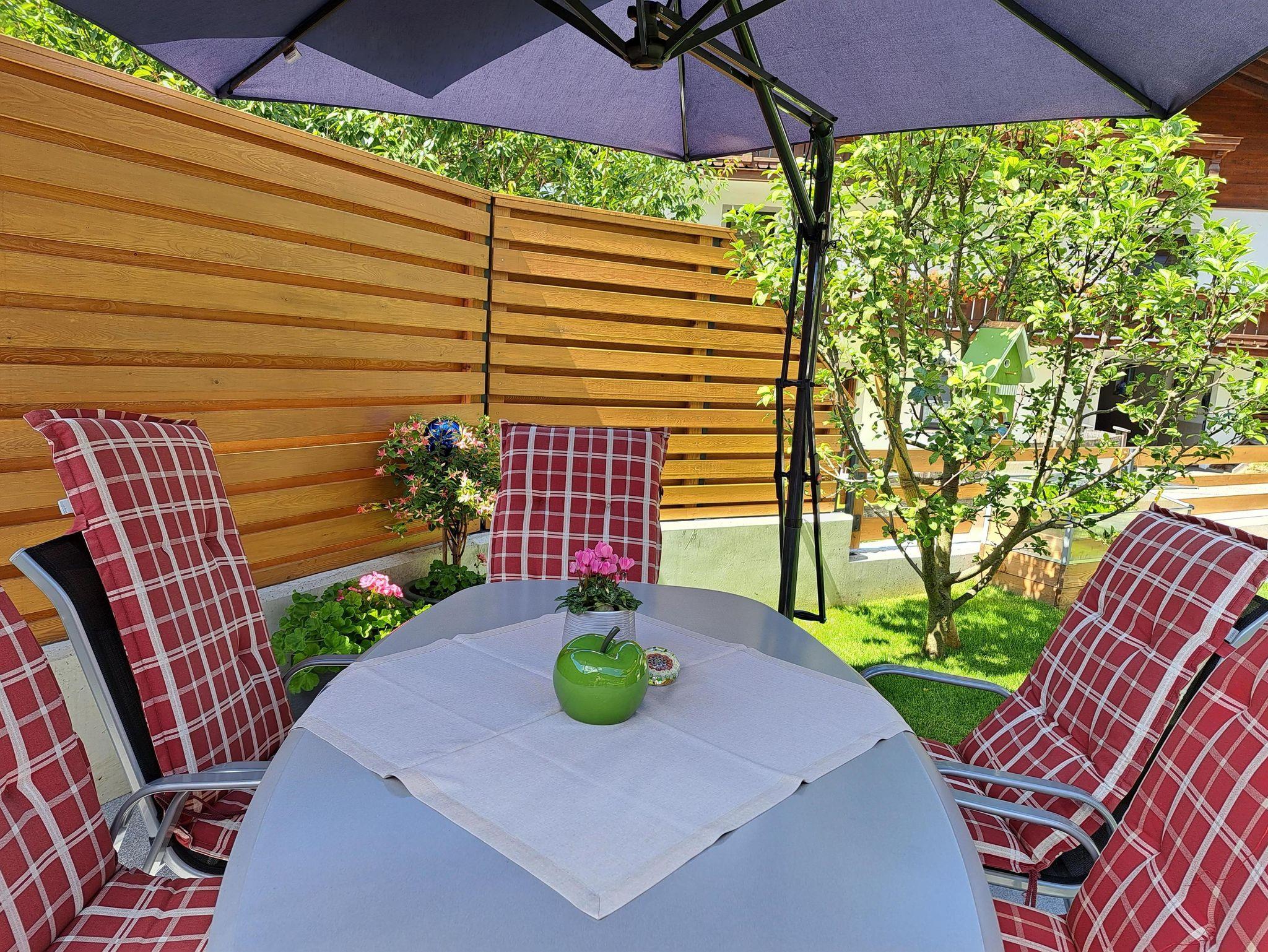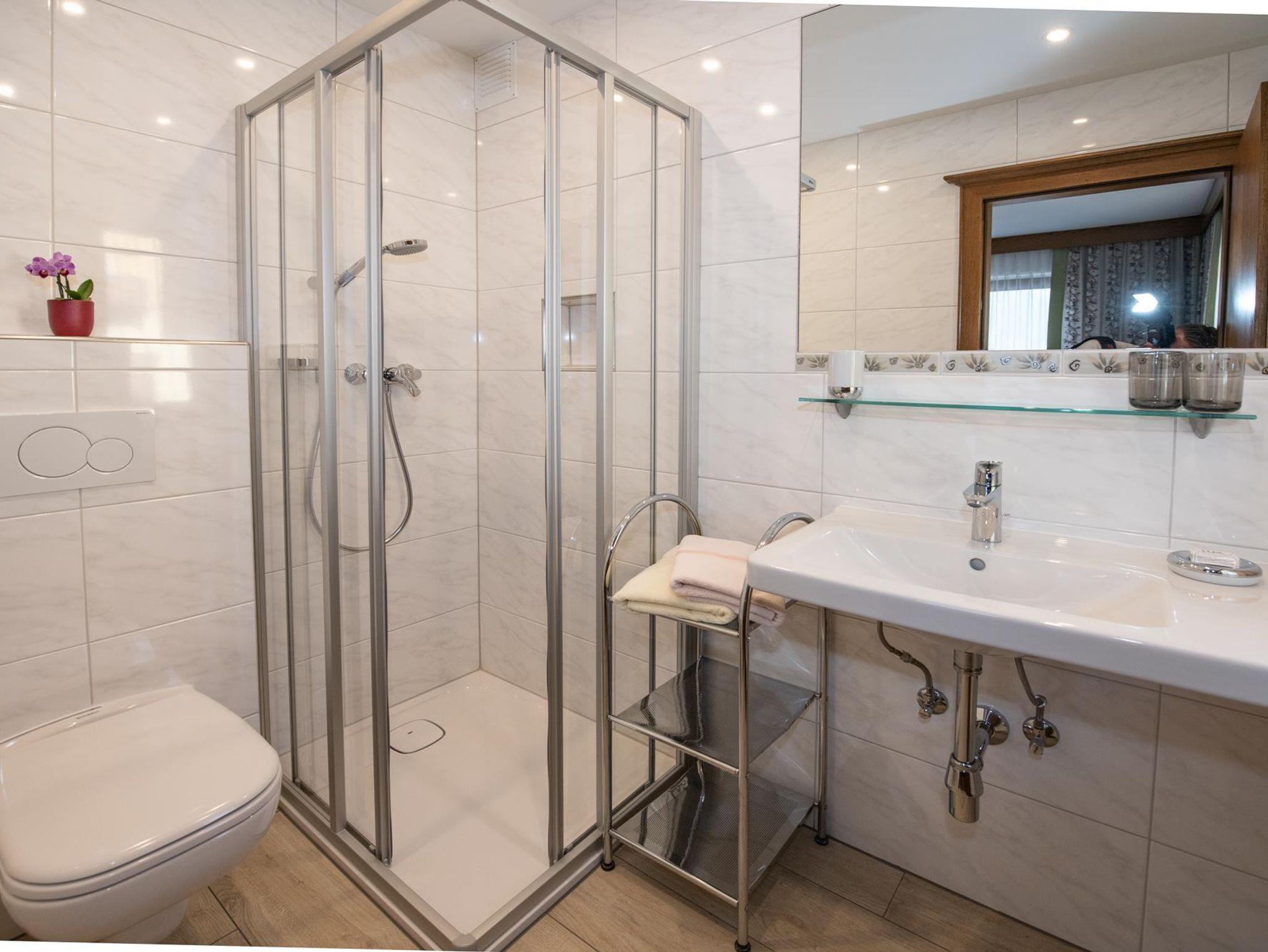 Neuer Duschraum mit WC, großer Balkon mit Bergblick.
