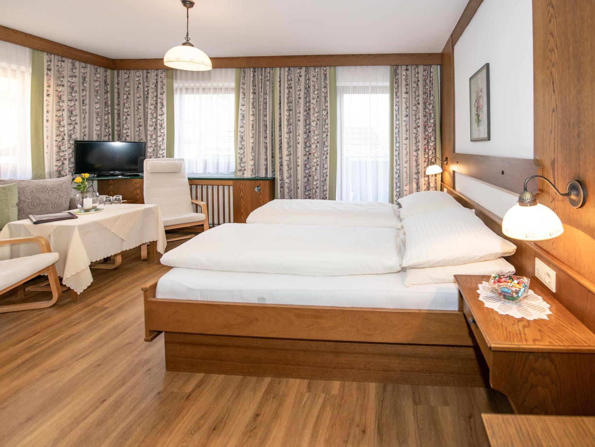 Sie wohnen in behaglichen Komfortzimmer mit Frühstück - gemütliche Wohnecke, große Flat-TV, W-Lan, neu renovierte Duschbereiche und gemütlich möblierter Balkon oder in geräumigen Appartements 2-5/6 Personen.