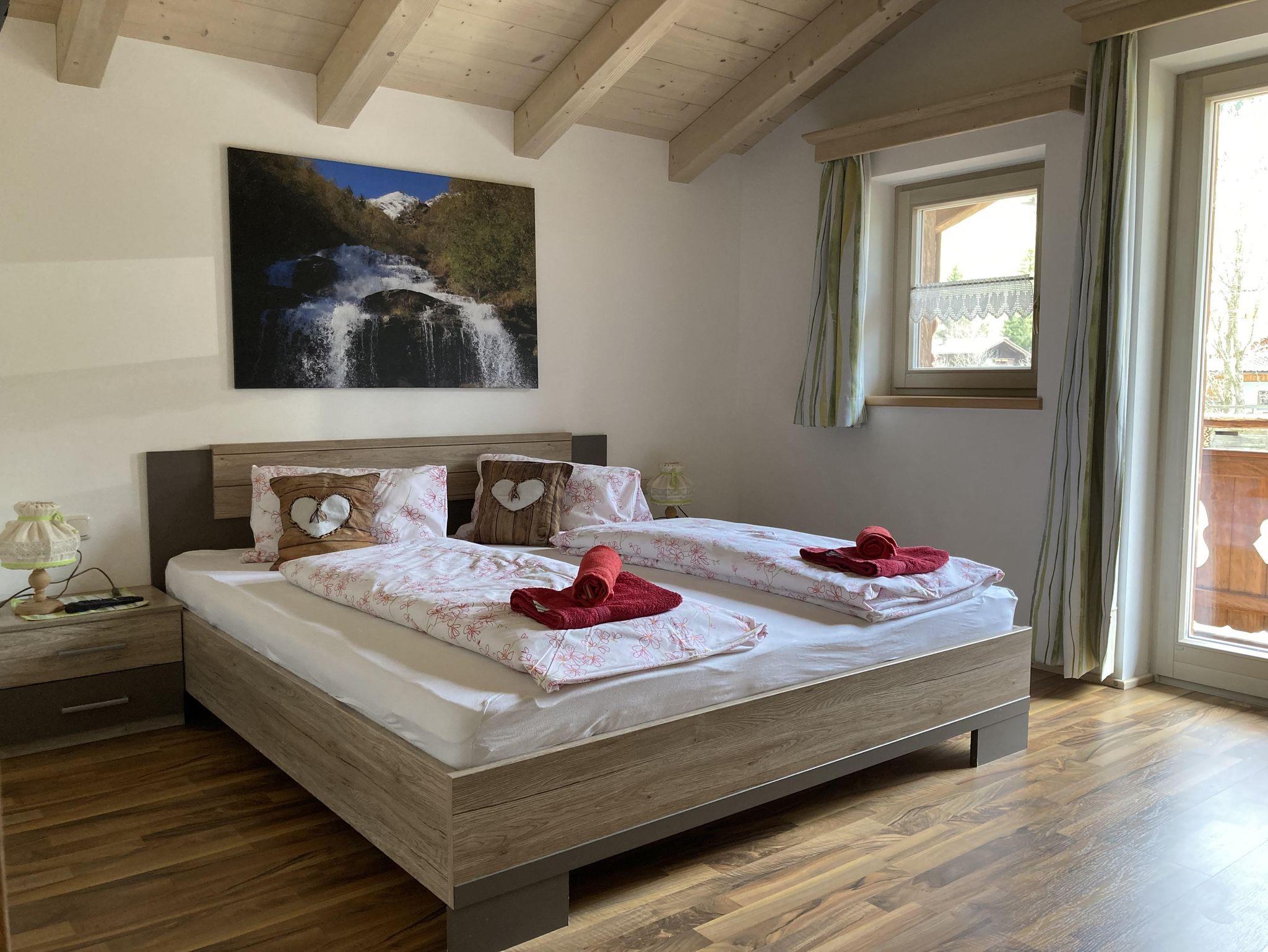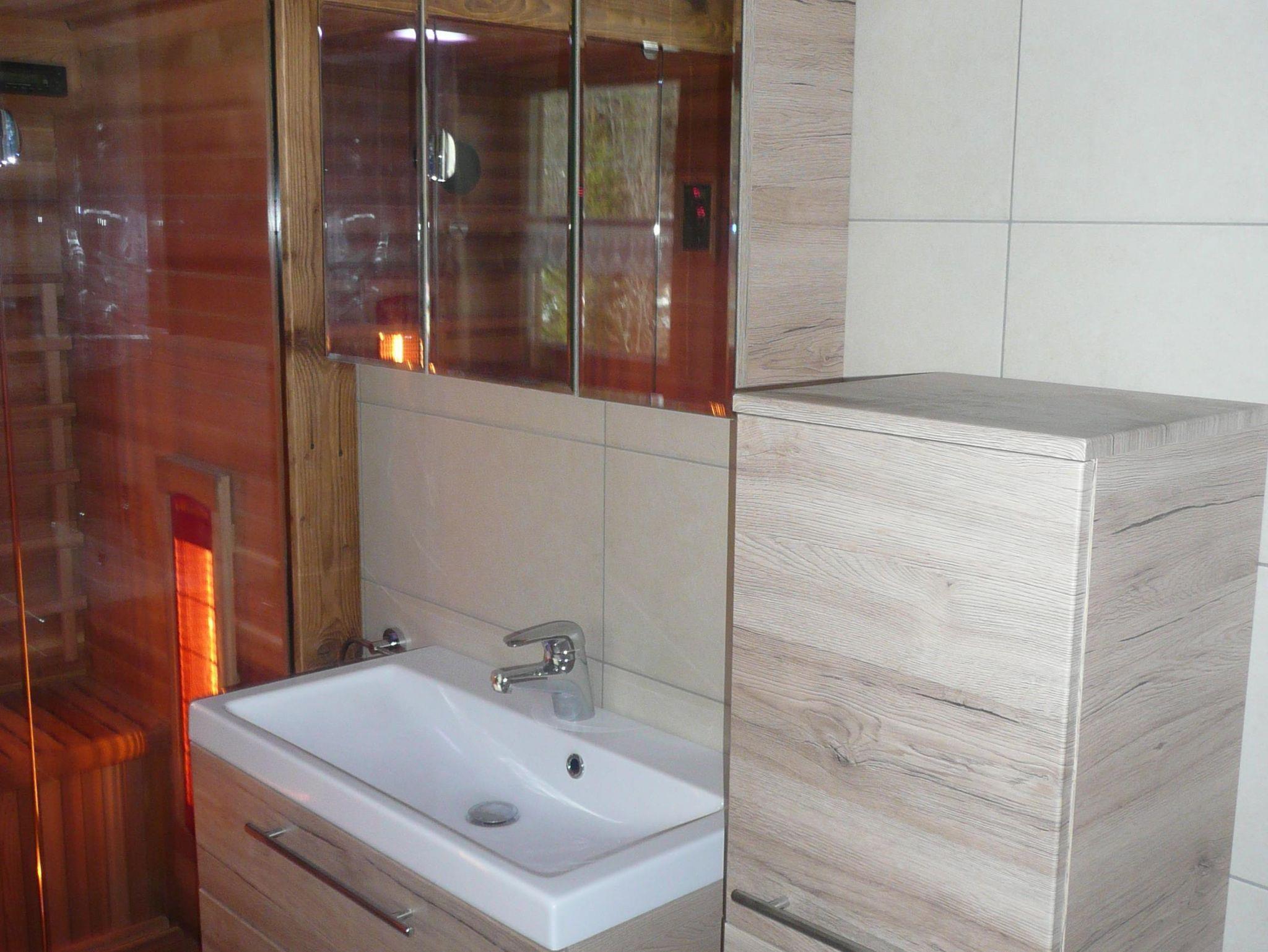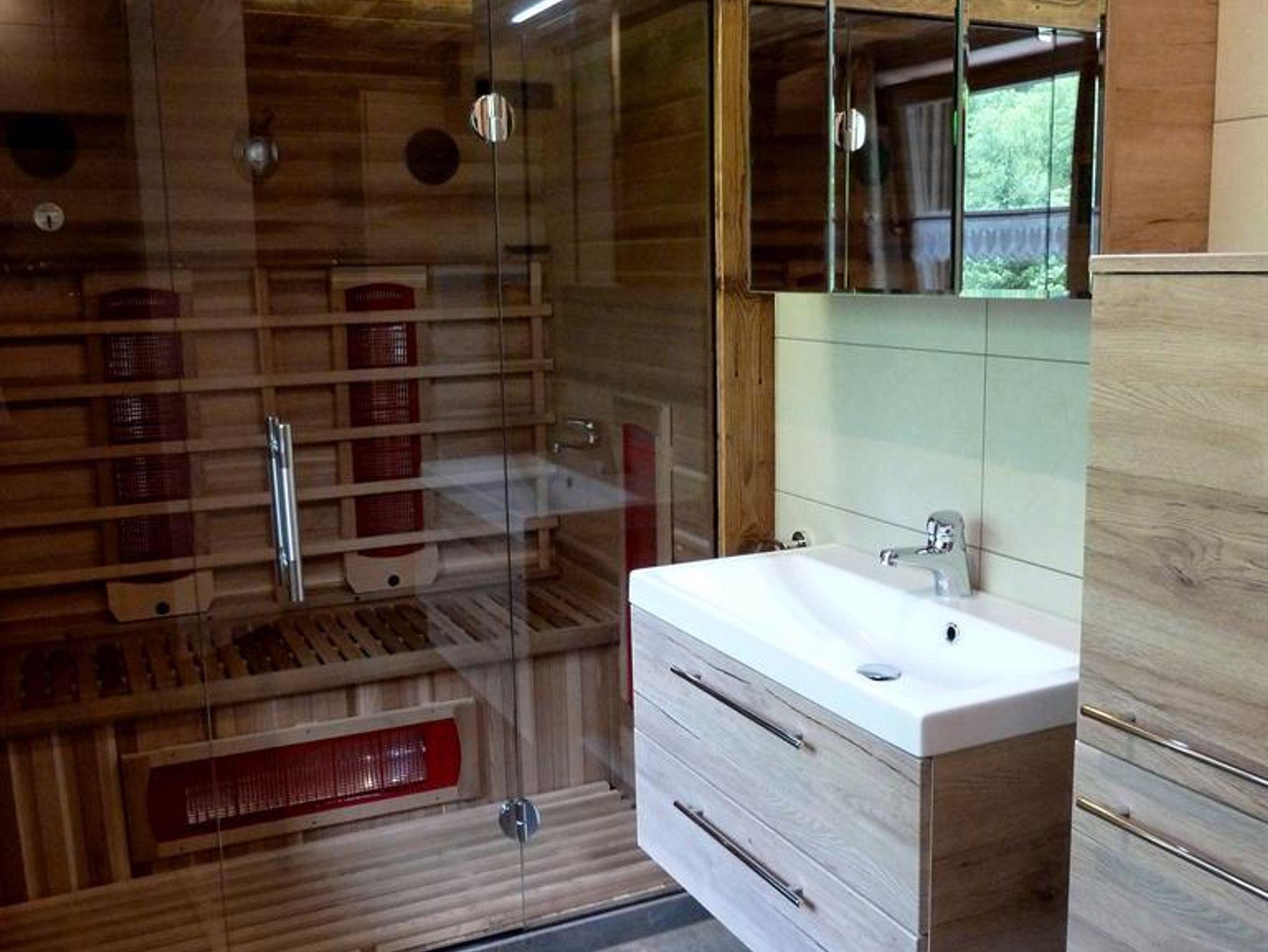 Im Obergeschoss befinden sich drei gemütliche Doppelzimmer, wovon eines zusätzlich mit einem Badezimmer. Neben den Schlafräumen befindet sich das Badezimmer mit Infrarot-Kabine und ein seperates WC ist.
