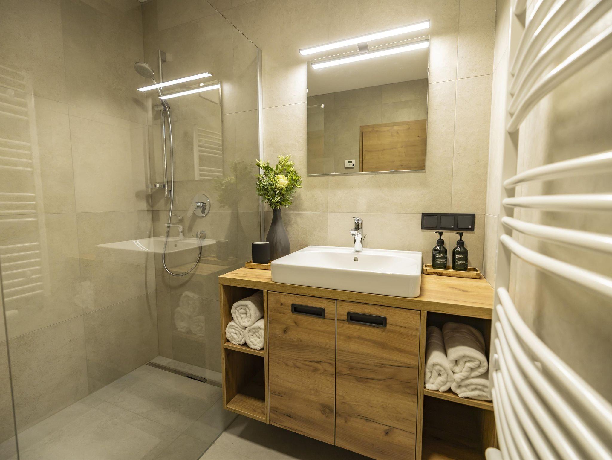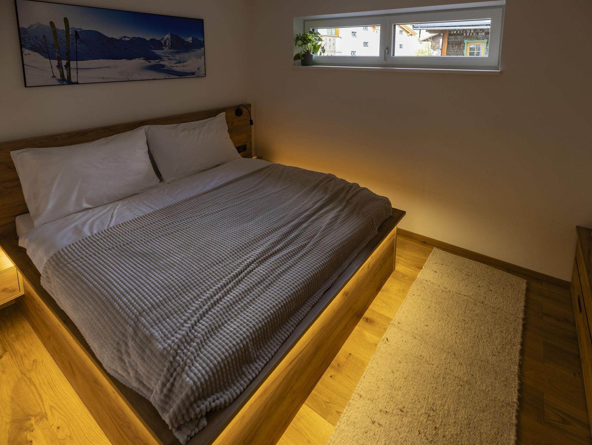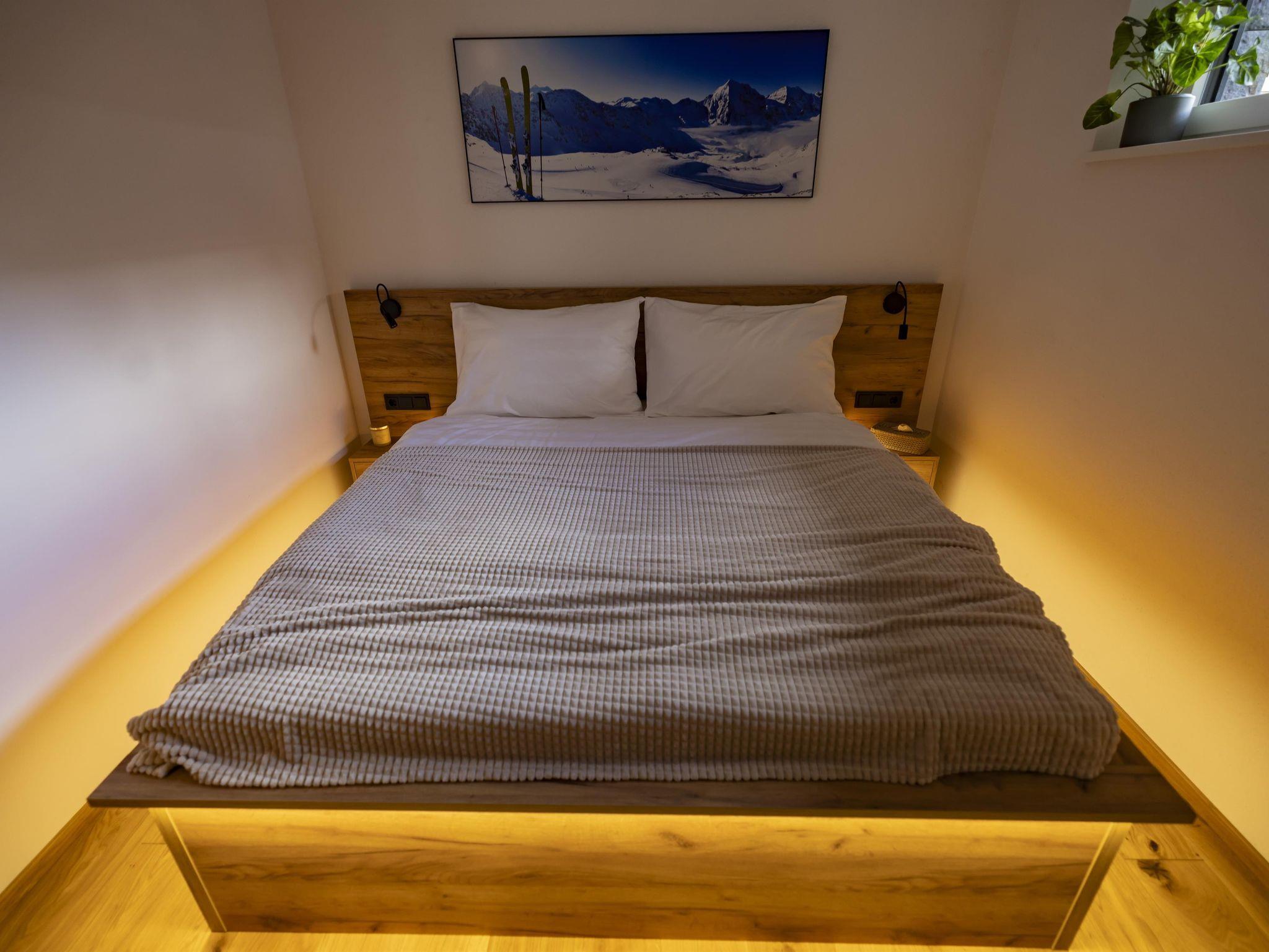 Gemütliche Unterkunft für eine größere Familie mit mehr Kindern als Eltern. Ein großes Schlafzimmer mit einem Doppelbett, einem ausziehbaren Doppelbett und der Möglichkeit eines Zusatzbettes im Wohnzimmer. Riesige Terrasse lädt im Sommer zum Grillen oder ungestörten Spielen der Kinder ein, mit atemberaubendem Blick auf die umliegenden Gipfel der Salzburger Alpen