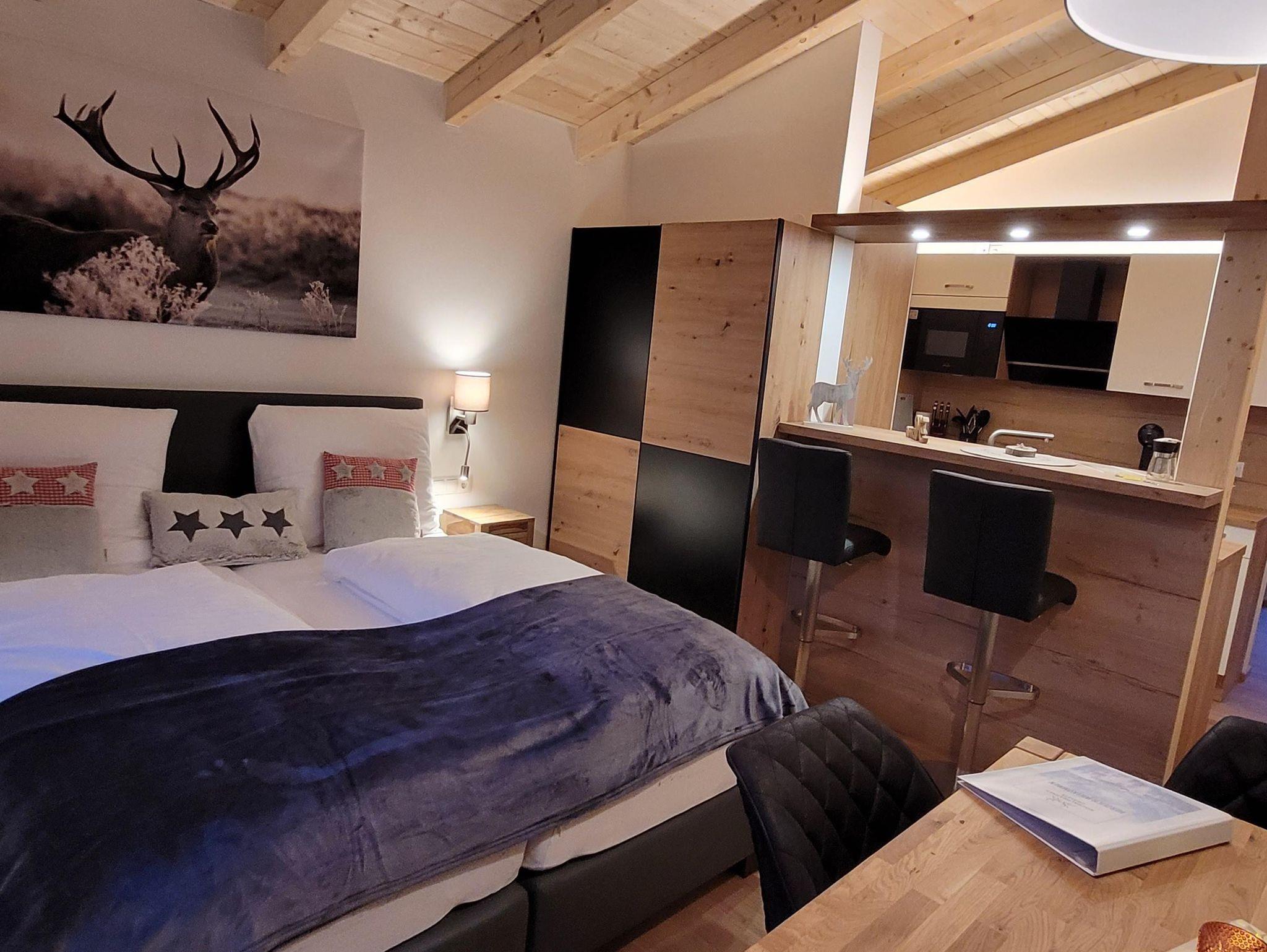 Das Appartement befindet sich im Obergeschoß und hat Küche, Wohnzimmer und Schlafzimmer in einem. Darüber hinaus haben wir ein modernes und gemütliches Bad mit Fenster. Wenn Sie von Ihren Unternehmungen zurückkehren können Sie sich an der in die Wohnküche integrierten Bar erholen. Vom großzügig gestalteten und gemütlich und hochwertig eingerichteten Wohn- Essbereich mit großem TV Flachbildschirm haben Sie einen Blick auf auf die Rauriser Berge. Vor dem Wohn- Essbreich haben Sie einen nach Süden ausgerichteten Balkon.