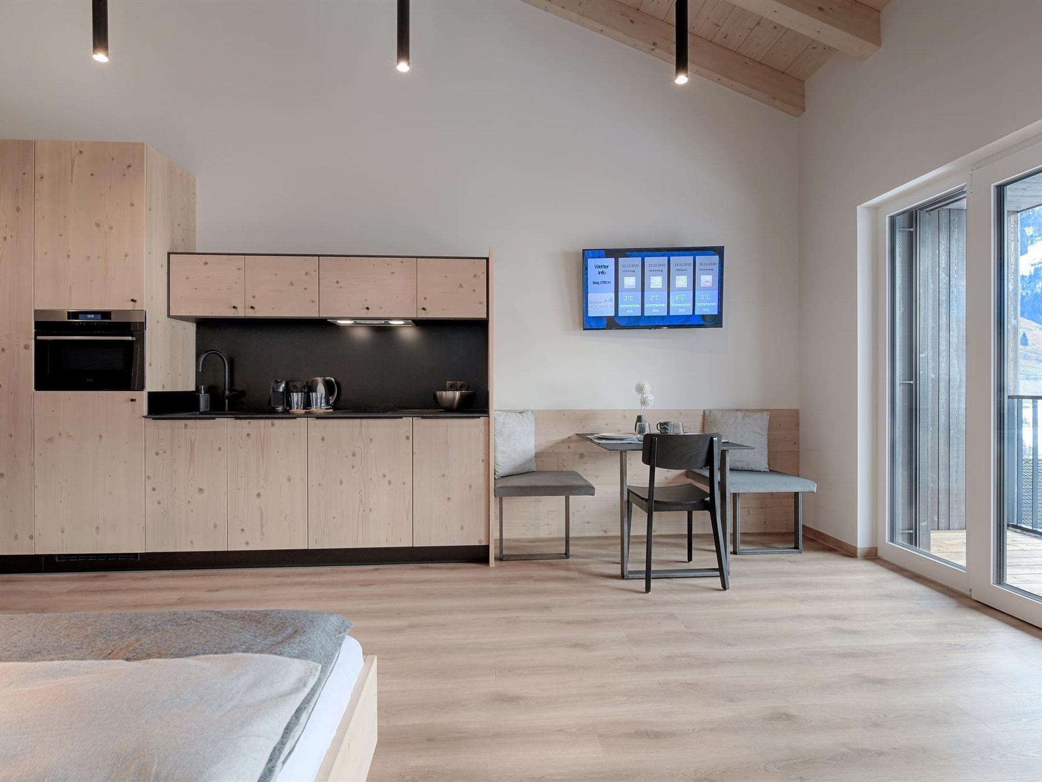 Klare, hochwertige, lichtdurchflutete, minimalistische Apartments mit großen Fensterfronten für den optimalen Ausblick auf unsere wunderschönen Berge und Skipisten! - direkt vor der Türe!