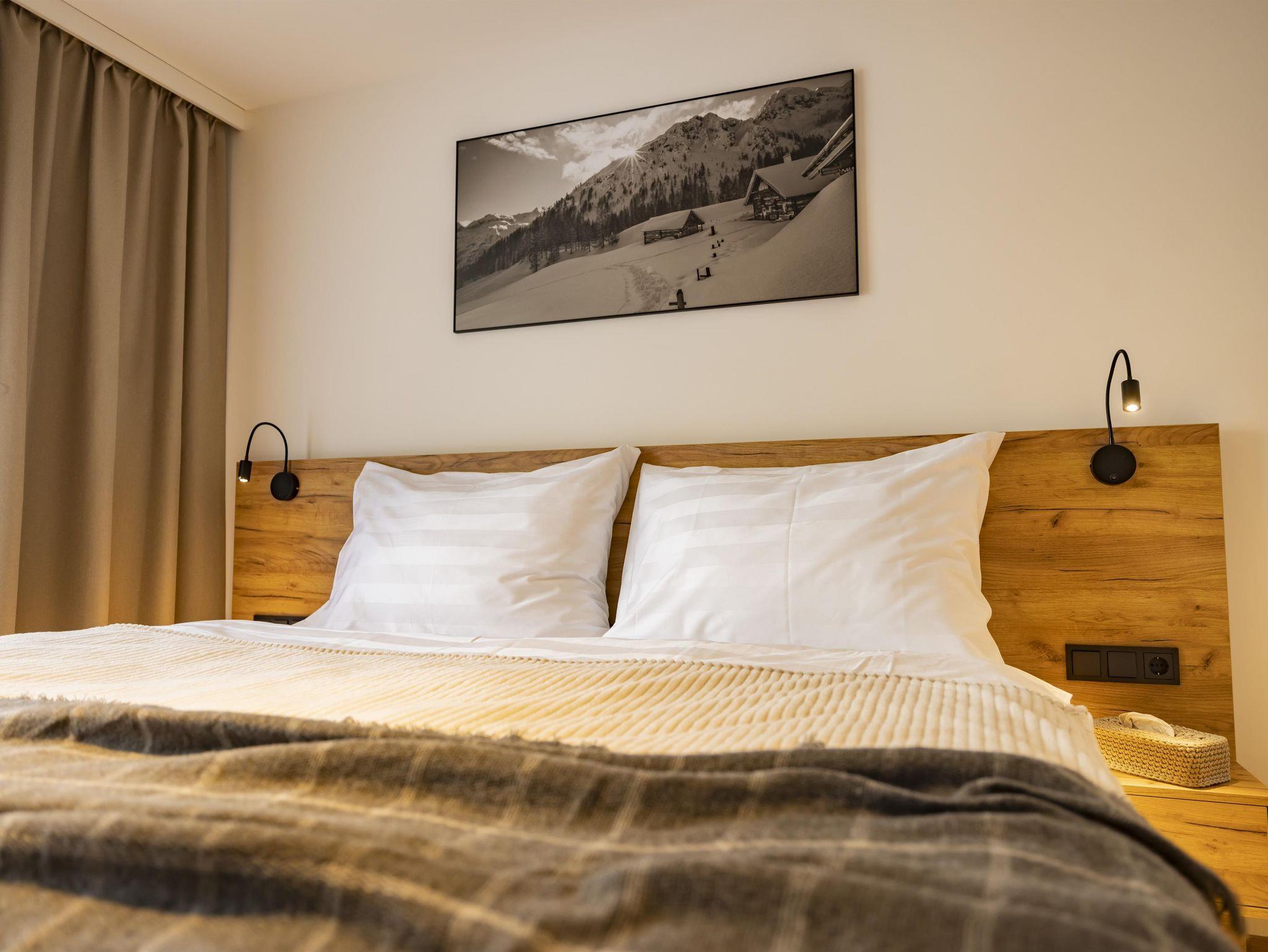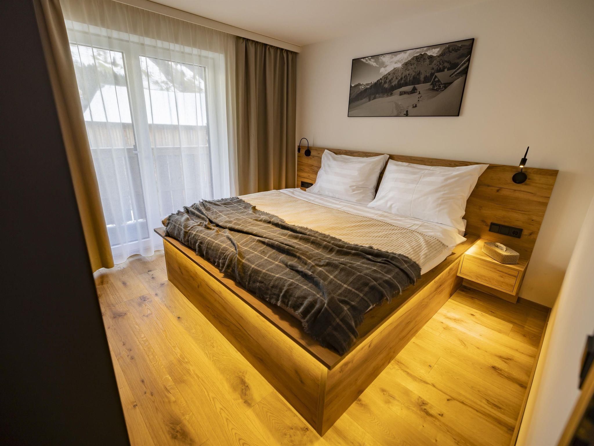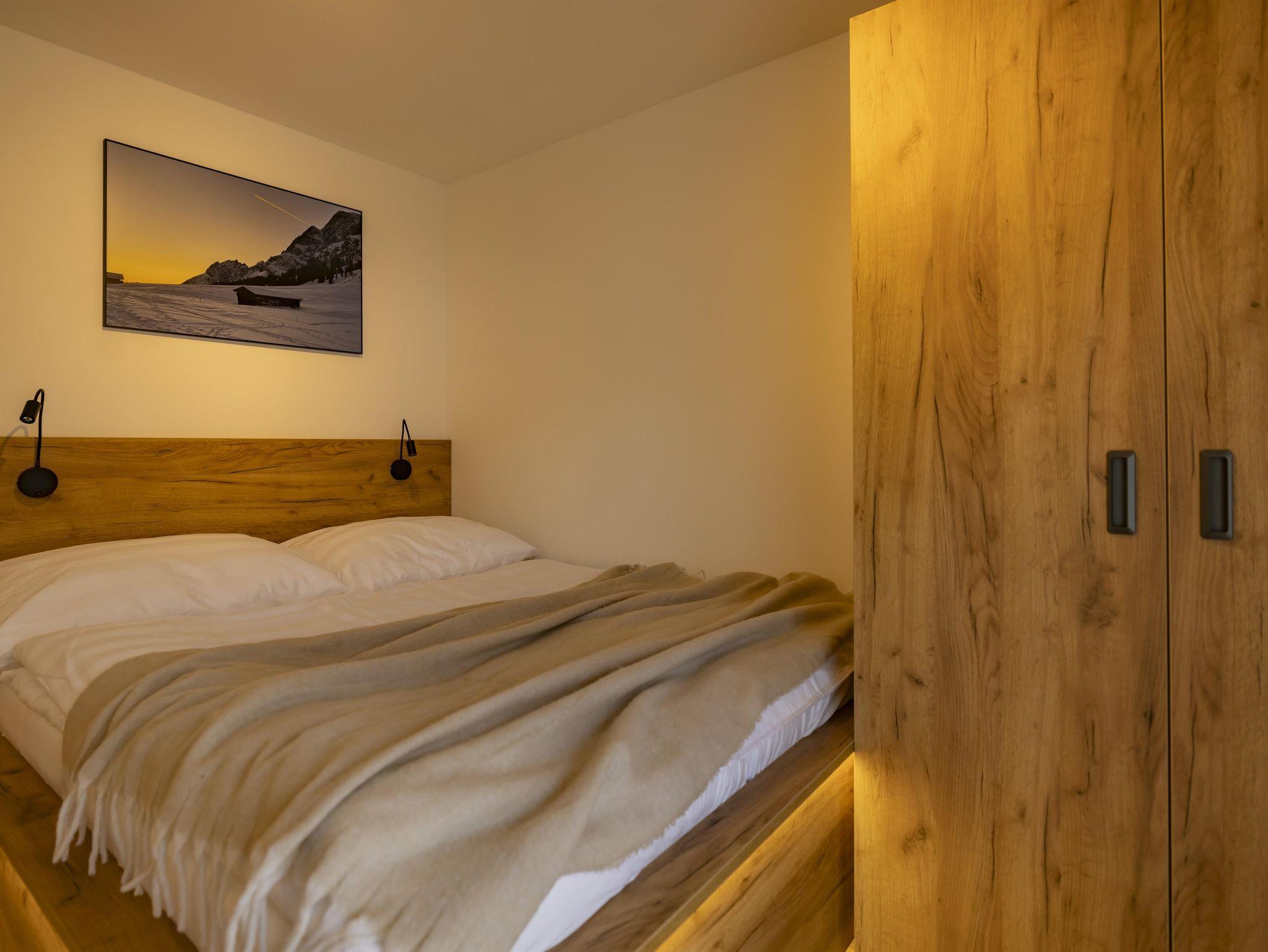 Im ersten Stock des Appartementhauses erwartet Sie eine schöne Wohnung, in der Sie von jedem Zimmer aus auf einen großzügigen Balkon treten und mit Blick auf die schneebedeckten Gipfel der Alpen entspannen können. Zwei getrennte Schlafzimmer mit Doppelbetten, ein geräumiges Badezimmer mit WC und eine gemütliche Küche mit Wohnzimmer garantieren maximalen Komfort für bis zu 6 Personen.