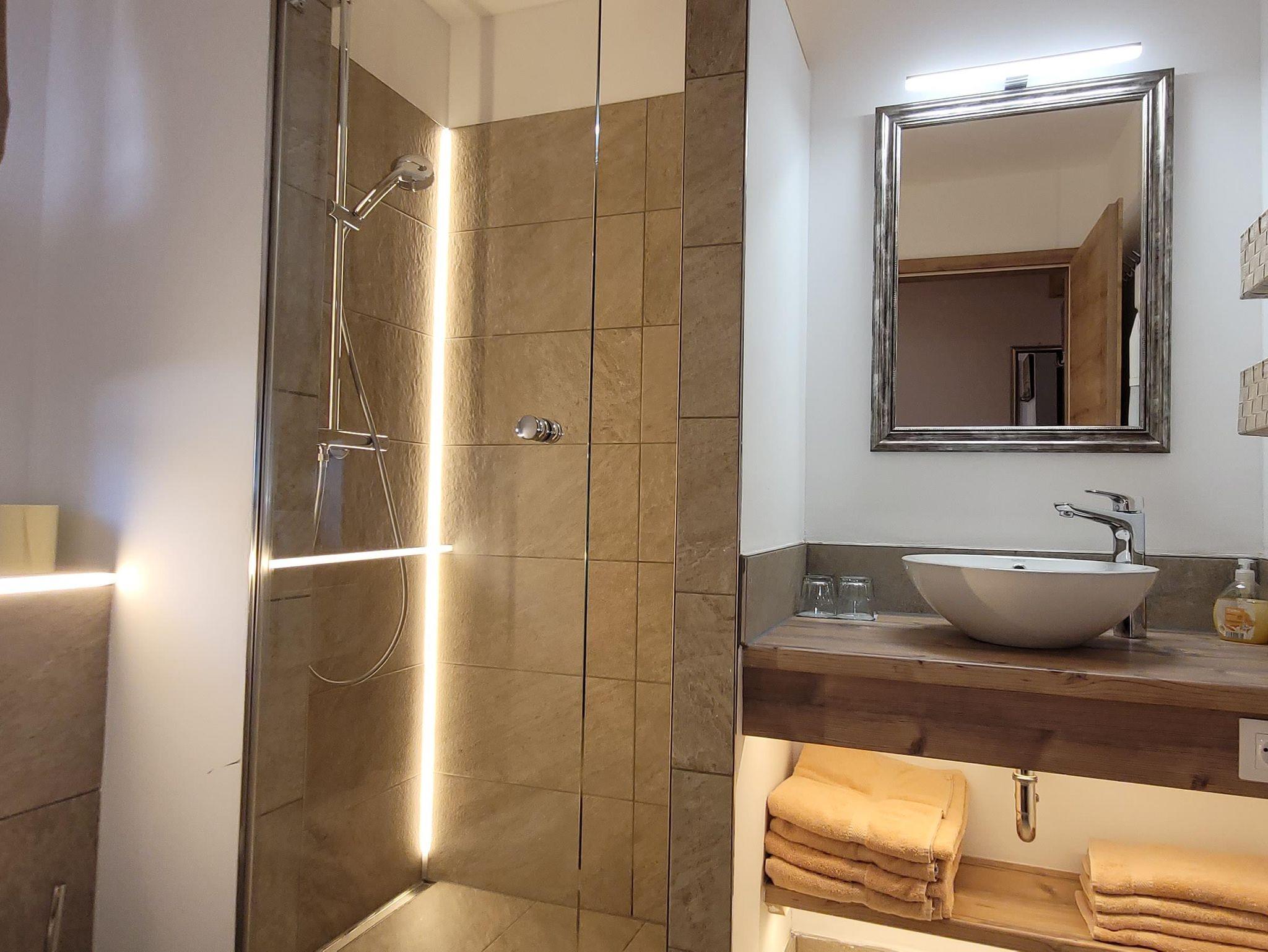 Das Appartement befindet sich im Erdgeschoß und hat 2 Schlafzimmer mit Boxspringbett, Schrank, großem TV Flachbildschirm, ein Schlafzimmer hat zusätzlich einen nach Süden ausgerichtete Terrasse. Darüber hinaus haben wir ein modernes und gemütliches Bad mit Fenster. Wenn Sie von Ihren Unternehmungen zurückkehren können Sie sich an der in die Wohnküche integrierten Bar erholen. Vom großzügig gestalteten und gemütlich und hochwertig eingerichteten Wohn- Essbereich mit großem TV Flachbildschirm haben Sie einen Blick auf den Hohe Sonnblick (3106 m). Vor dem Wohn- Essbreich haben Sie eine große nach Süden ausgerichtete Terrasse.Überzeugen Sie sich selber von unserem wunderschönen premium Appartement, das Ihnen einen hohen Erholungswert bieten.