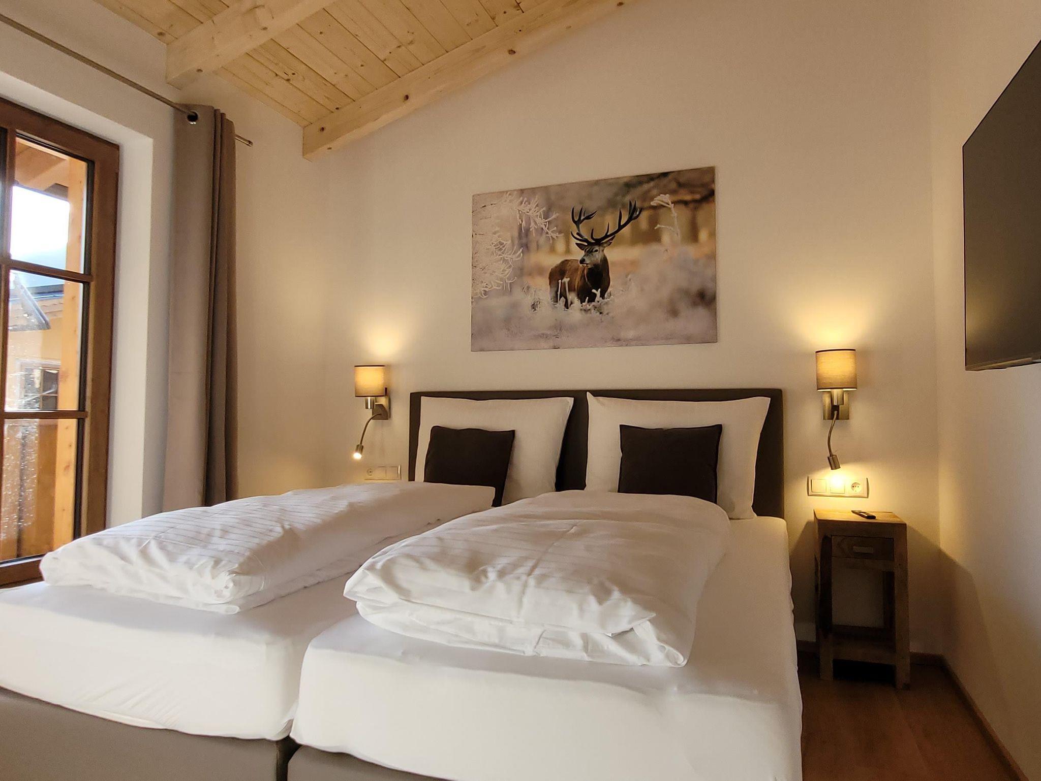 Im Erdgeschoß diesen Chalets befindet sich der großzügig gestaltete, gemütliche und hochwertig eingerichtete Wohn-Essbereich mit großem TV-Flachbildschirm. Wenn Sie von Ihren Unternehmungen zurückkehren, können Sie sich an der in die Wohnküche integrierten Bar erholen. Des Weiteren steht Ihnen im Erdgeschoß ein Gäste-WC und ein Abstellraum zur Verfügung. Im Obergeschoß befinden sich 3 Schlafzimmer mit Boxspringbett, Schrank, großem TV-Flachbildschirm und jeweils einem Balkon, sowie 2 moderne Bäder mit Dusche. Eine große Sauna mit Dusche erwartet Sie ebenfalls, darüber hinaus haben Sie einen TV-Raum mit Schlafsofa und Tisch. Im Außernbereich stehen Ihnen 2 KFZ-Stellplätze, ein schöner Garten mit Terasse und Gartenmöbel zur Verfügung.