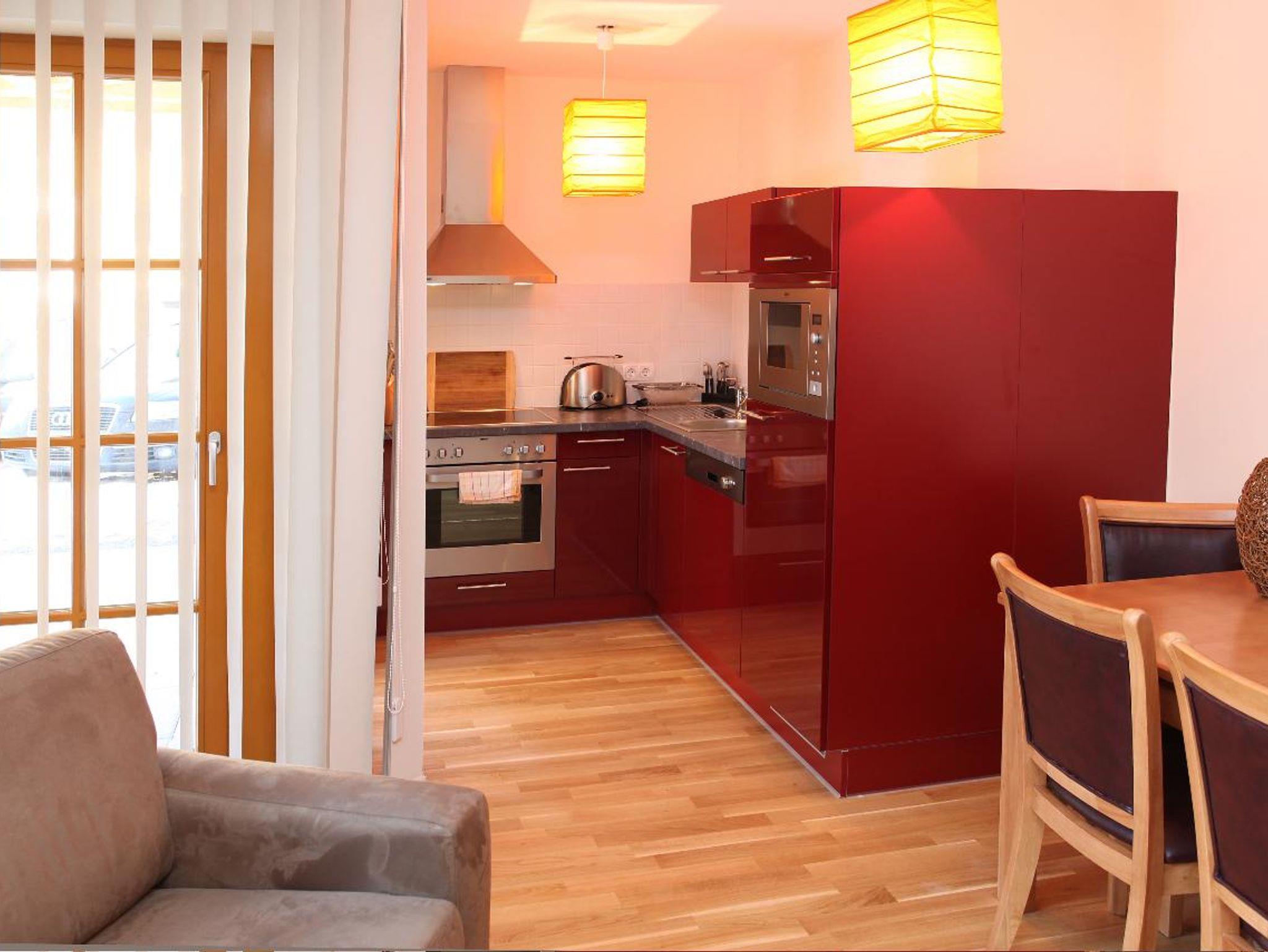 Die gemütlich, komfortabel und modern eingerichteten Appartements verfügen über einen kombinierten Wohn-/Schlafraum mit einer Schlafcouch (1,20 m breit), ein bzw. zwei separate Schlafzimmer sowie eine komplett ausgestattete Küche mit Herd, Backofen, Kaffeemaschine, Spülmaschine, Mikrowelle, Bügelmöglichkeit, etc. Ein Sat-TV sowie ein Internetanschluss im Appartement (gg. Gebühr) sind vorhanden