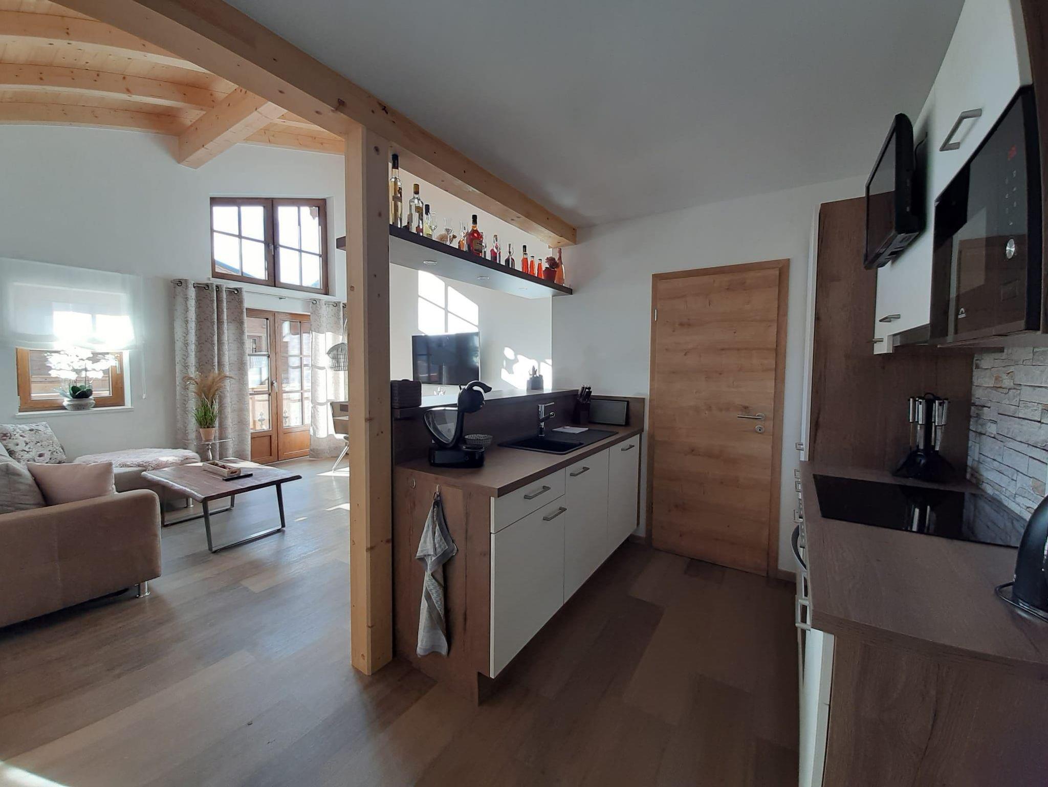 Das Appartement befindet sich im Obergeschoß und hat 2 Schlafzimmer mit Boxspringbett, Schrank, großem TV Flachbildschirm, ein Schlafzimmer hat zusätzlich einen nach Süden ausgerichtetetn Balkon. Darüber hinaus haben wir ein modernes und gemütliches Bad mit Fenster. Wenn Sie von Ihren Unternehmungen zurückkehren können Sie sich an der in die Wohnküche integrierten Bar erholen. Vom großzügig gestalteten und gemütlich und hochwertig eingerichteten Wohn- Essbereich mit großem TV Flachbildschirm haben Sie einen Blick auf den Hohe Sonnblick (3106 m). Vor dem Wohn- Essbreich haben Sie einen großen nach Süden ausgerichteten Balkon.Überzeugen Sie sich selber von unserem wunderschönen premium Appartement, das Ihnen einen hohen Erholungswert bieten.